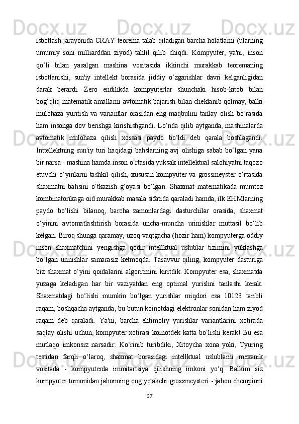 boshlashdi.   Mashina   insongagina   xos   bo‘lgan   deduktuv   fikrlash   xossasini