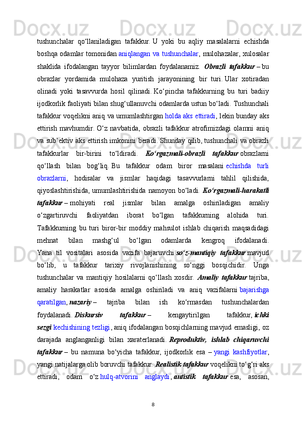 u   tafakkur   rivojlanishining   eng   yuqori   shaklidir.   Ijodiy   tafakkurning   turli   xil