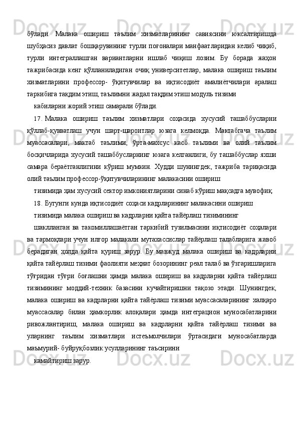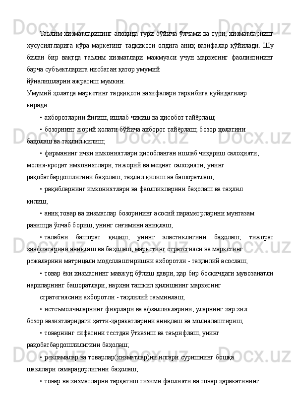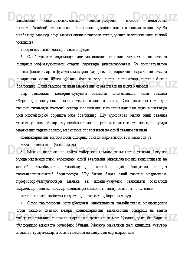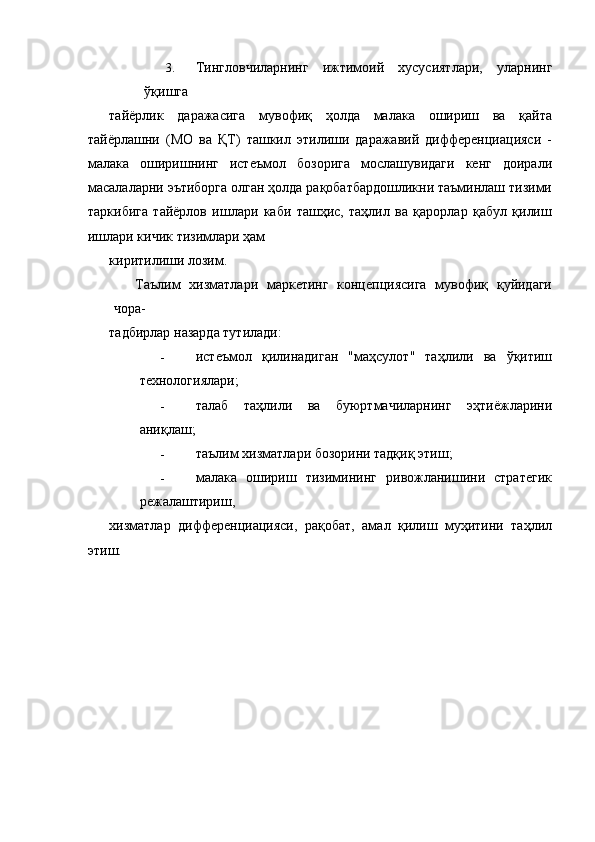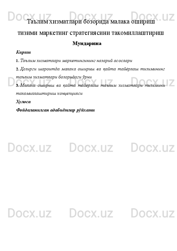 Таълим хизматлари бозорида малака ошириш тизими маркетинг стратегиясини такомиллаштириш