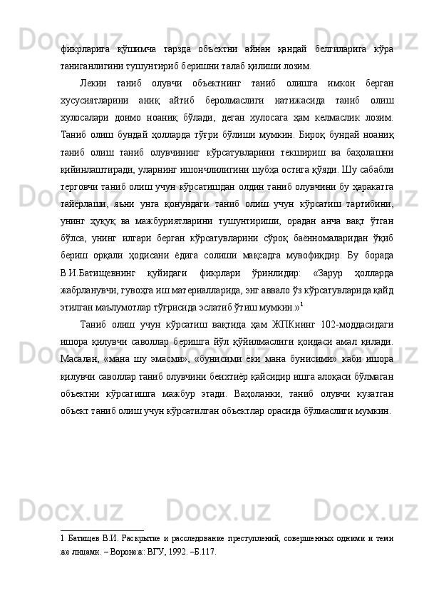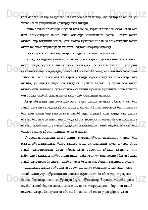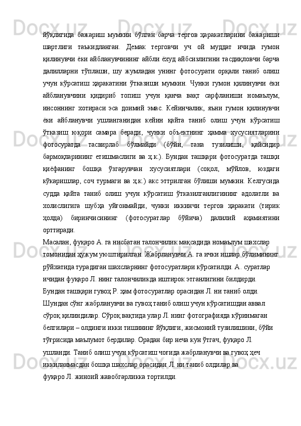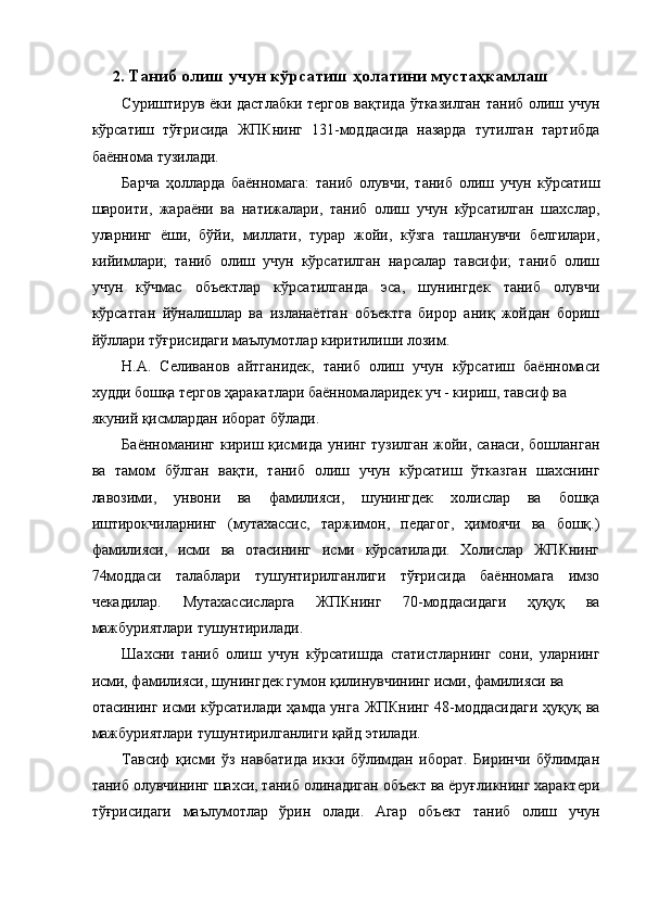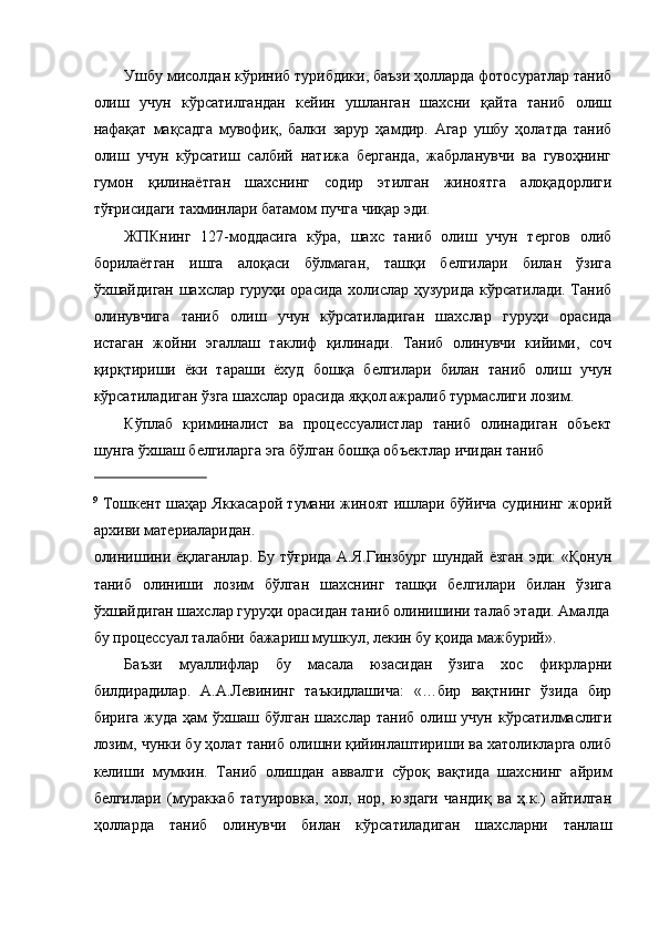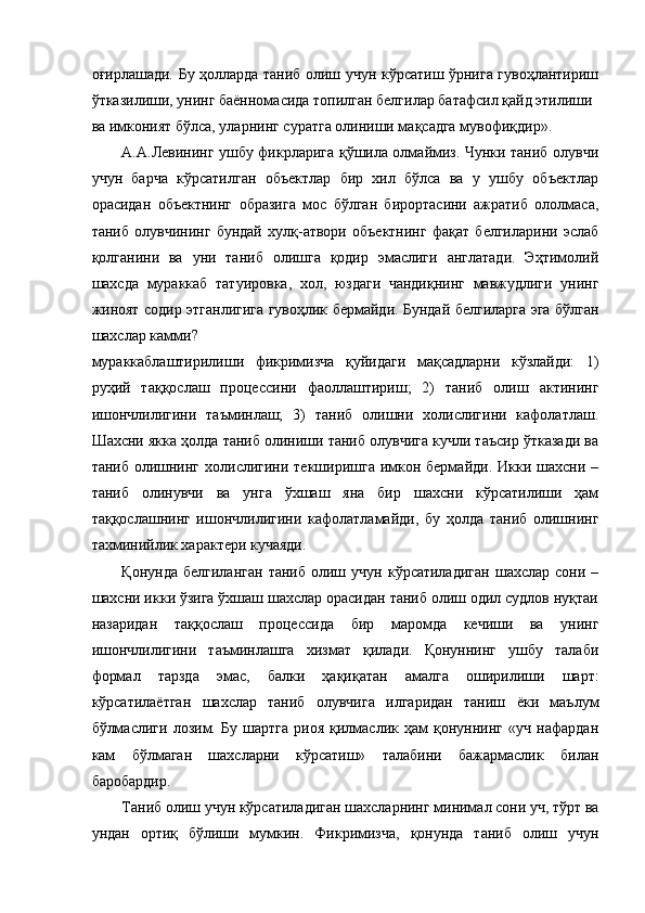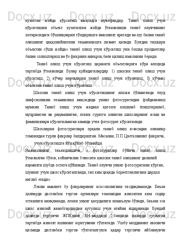 Таниб олиш учун кўрсатиш мустакил тергов ҳаракати сифатида
