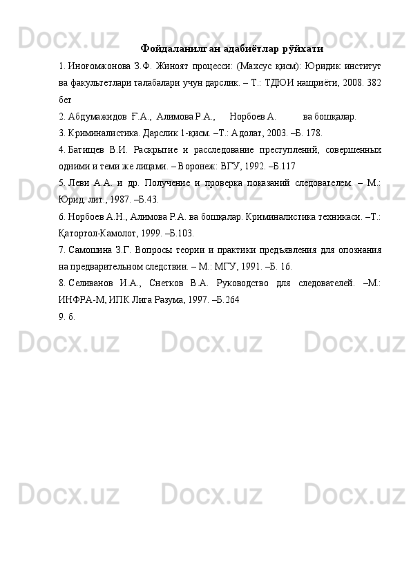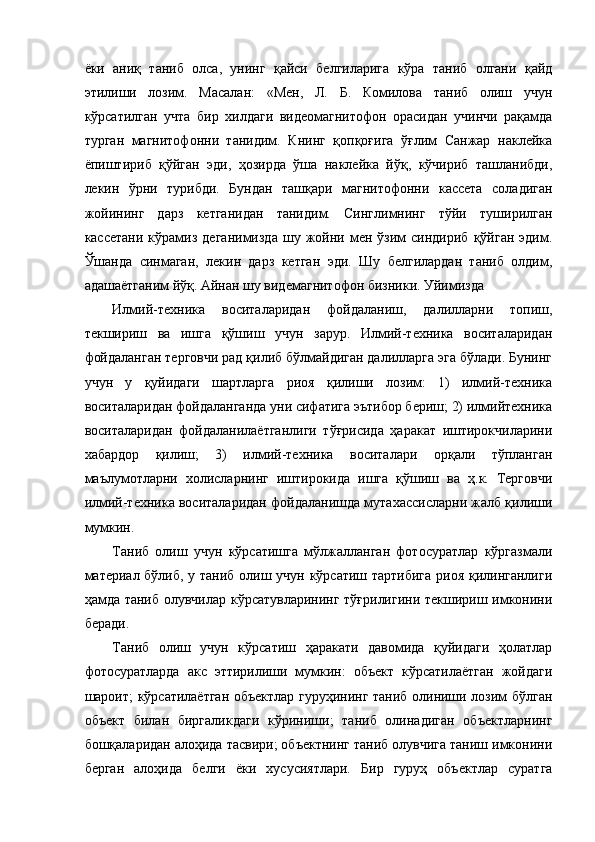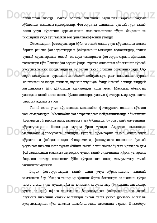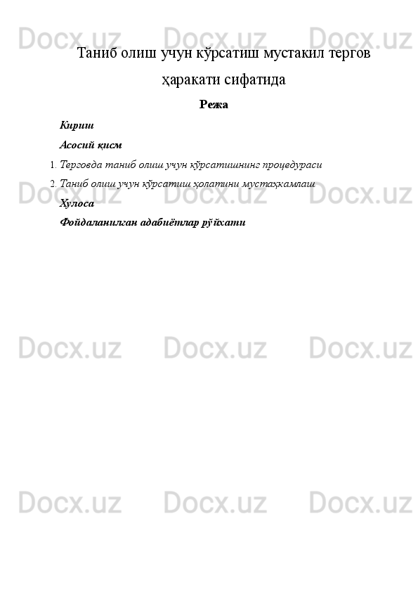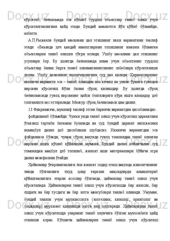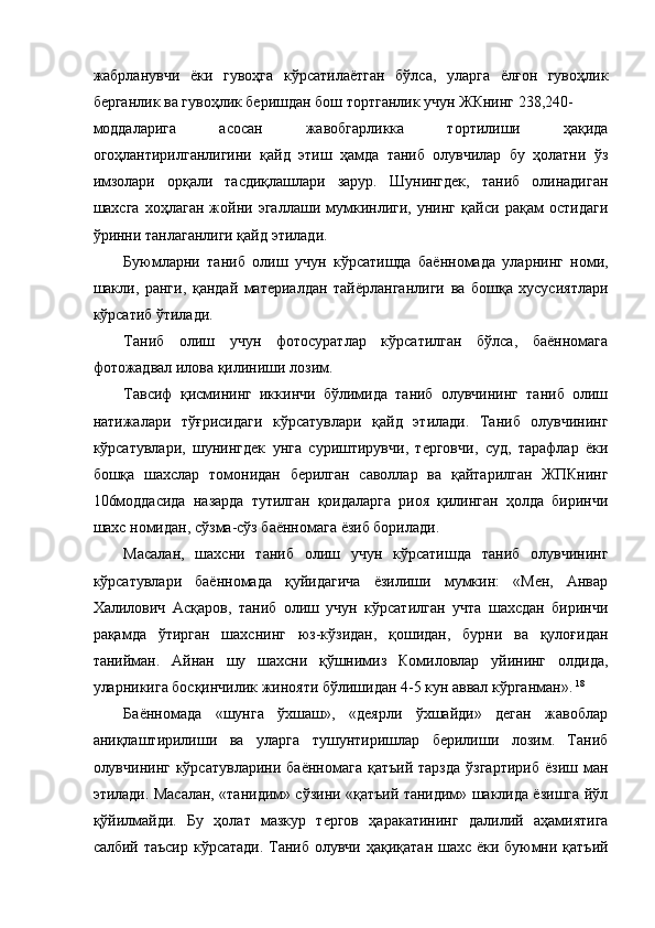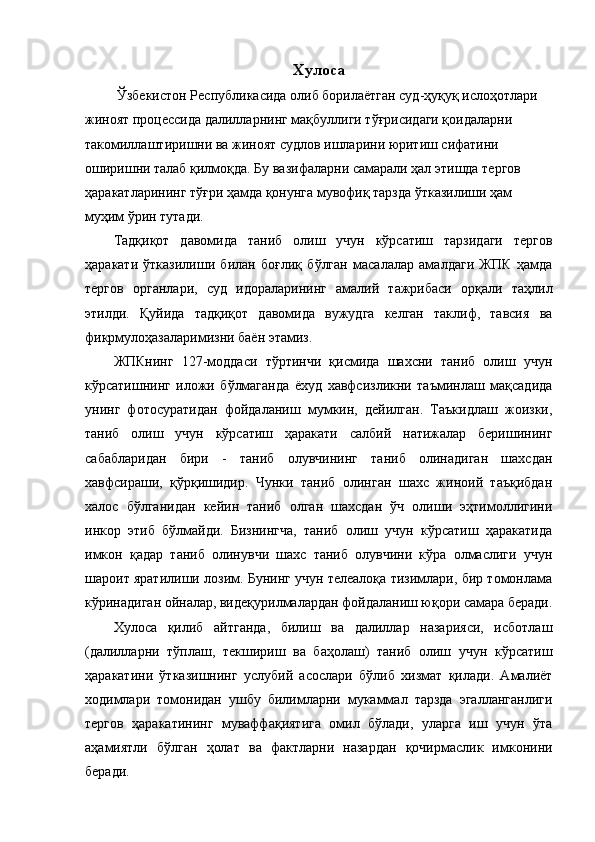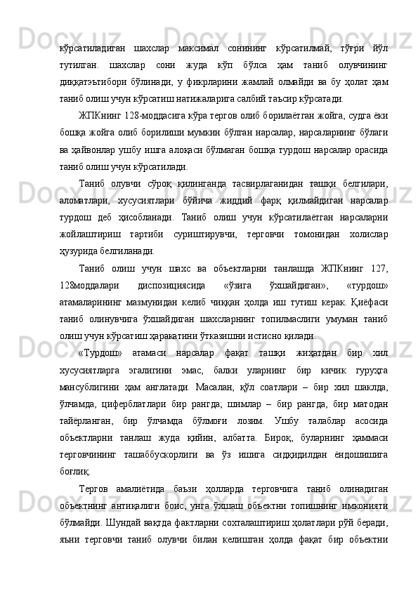 Таниб олиш учун кўрсатиш мустакил тергов ҳаракати сифатида