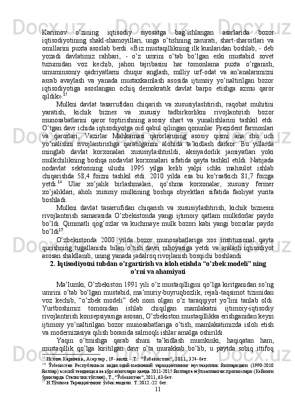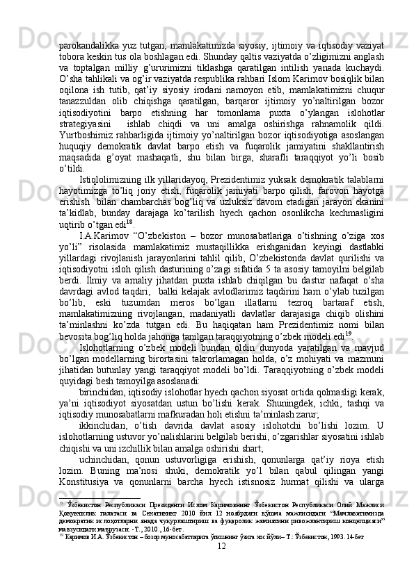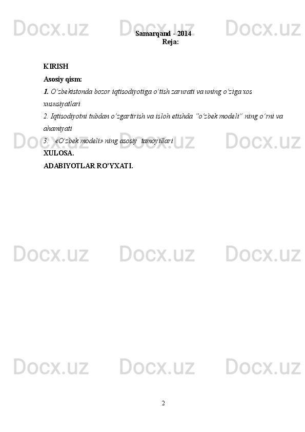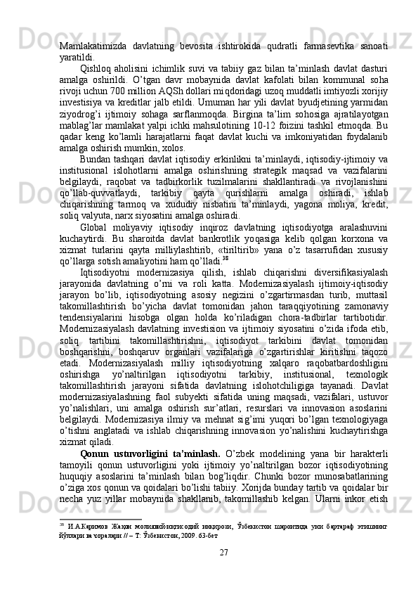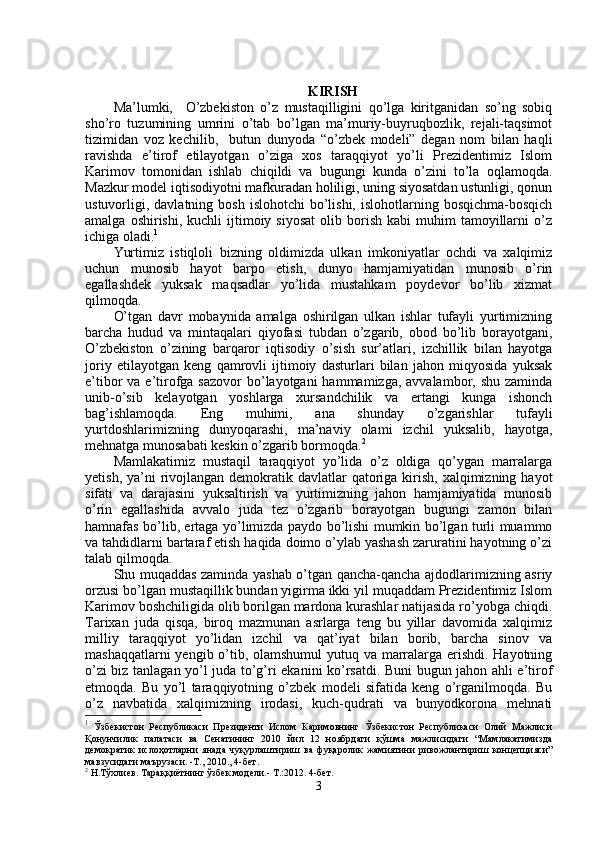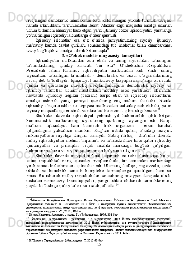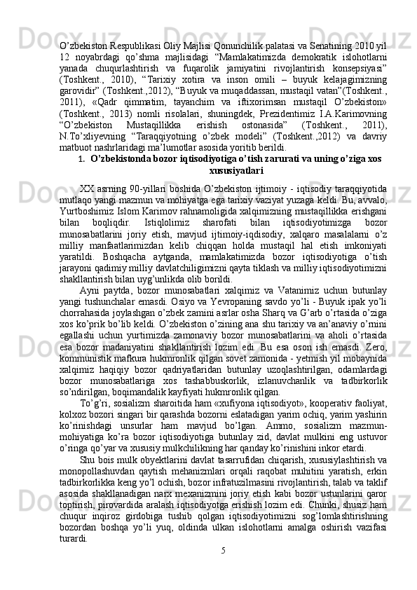 Taraqqiyotning “O’zbek modeli” va uning asosiy xususiyatlari