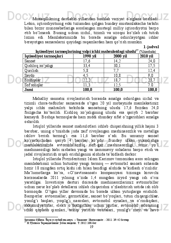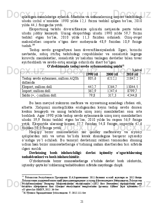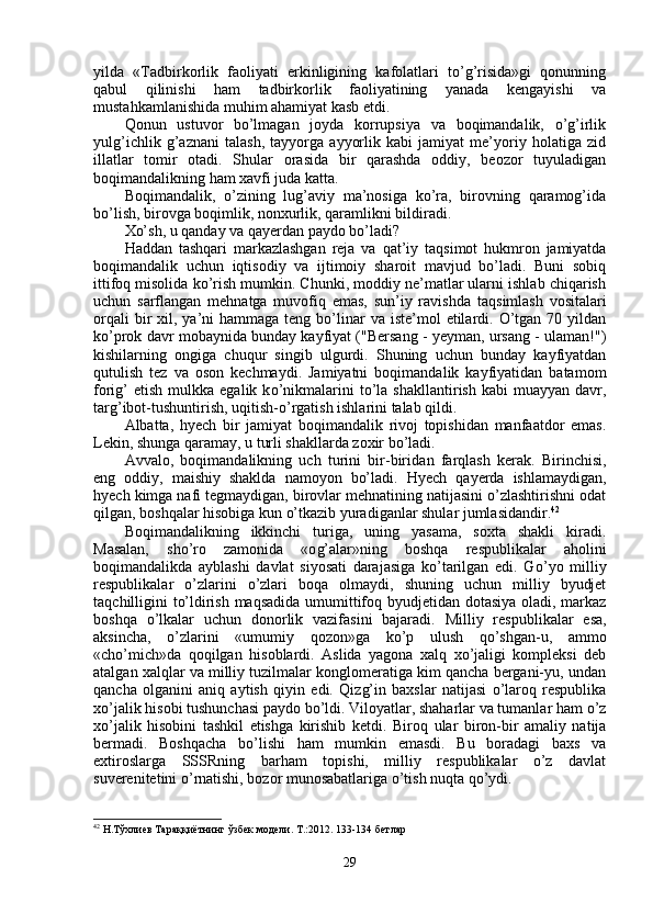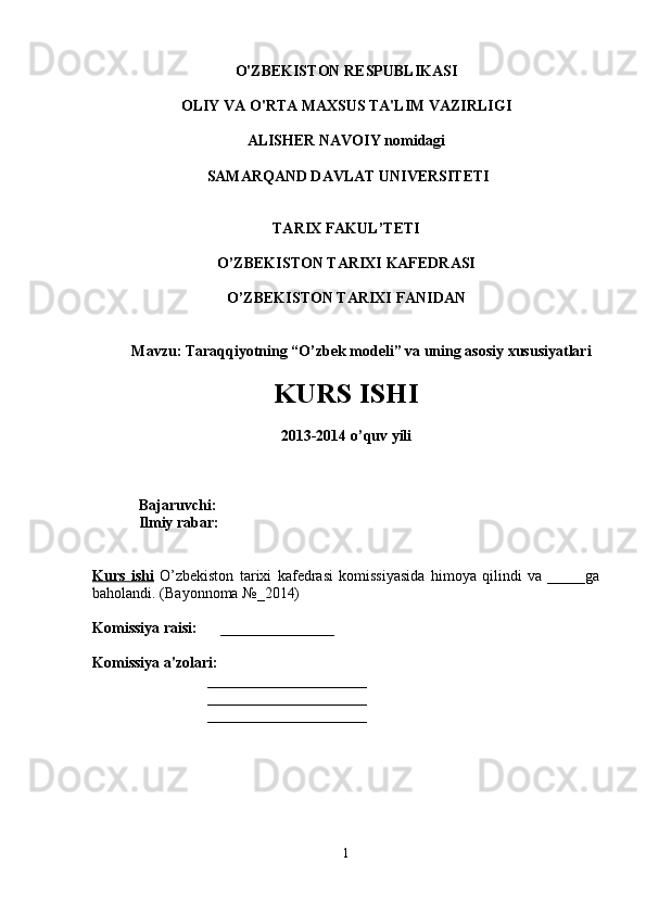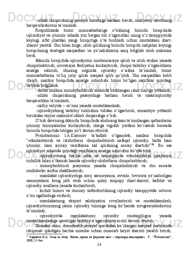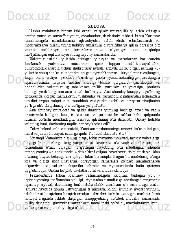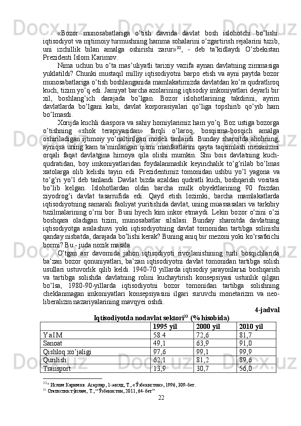 Taraqqiyotning “O’zbek modeli” va uning asosiy xususiyatlari