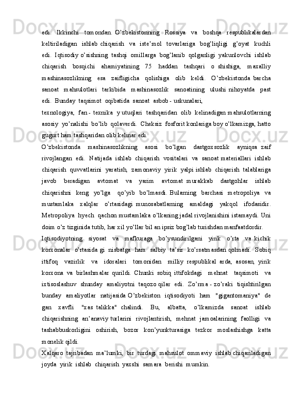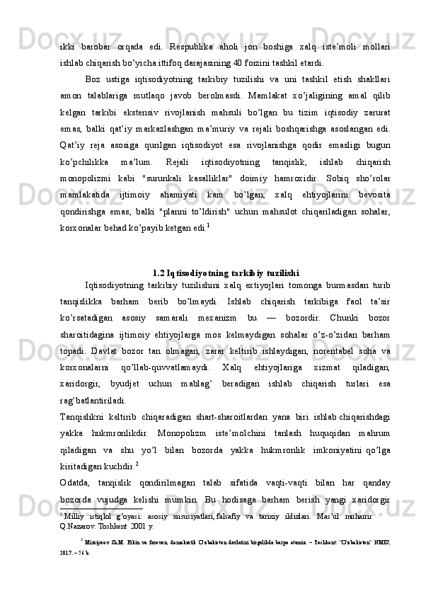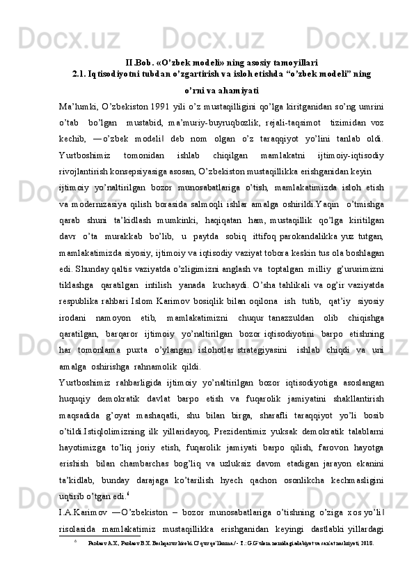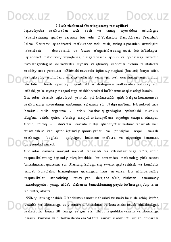 Taraqqiyotning o’zbek modeli va uning o’ziga xos xususiyatlari
