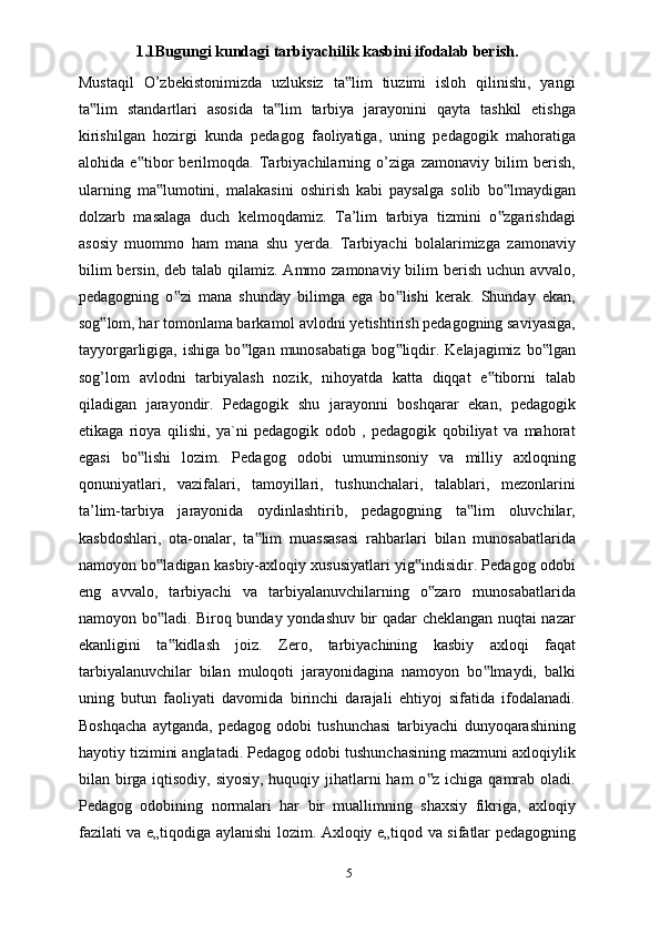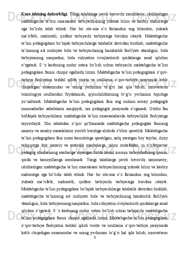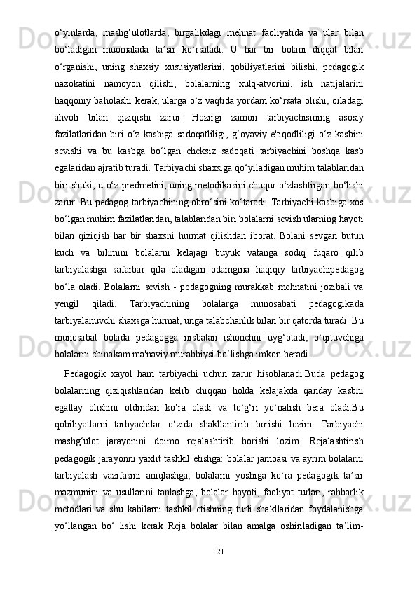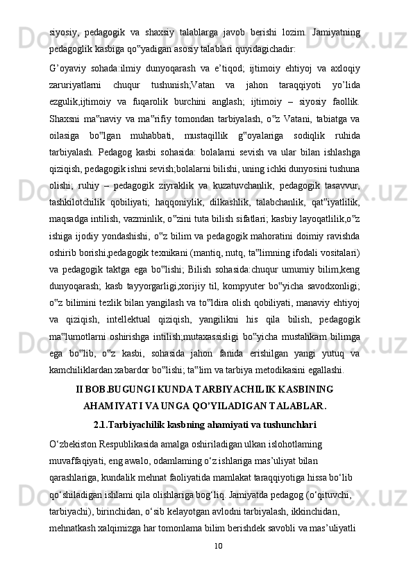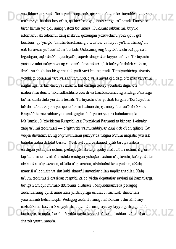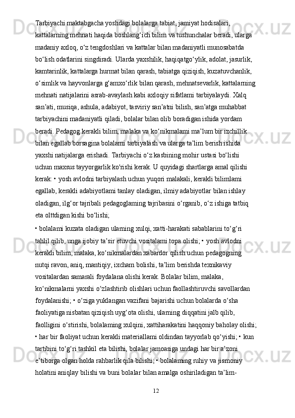 Tarbiyachilik kasbi, tarbiyachilik kasbining ahamiyati, tarbiyachilarga qo’yiladigan talablar