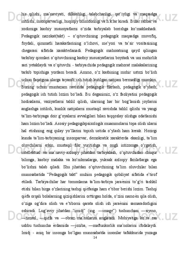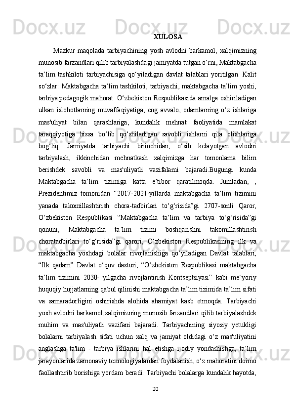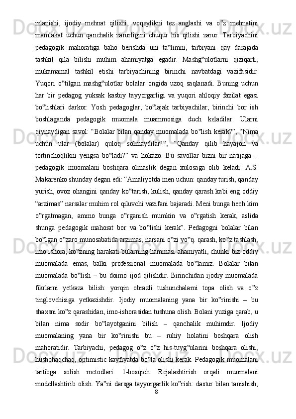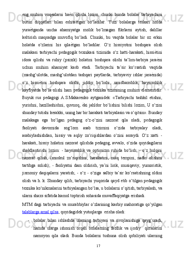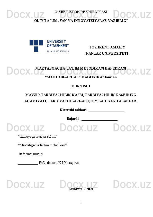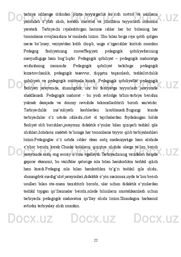 Tarbiyachilik kasbi, tarbiyachilik kasbining ahamiyati, tarbiyachilarga qo’yiladigan talablar
