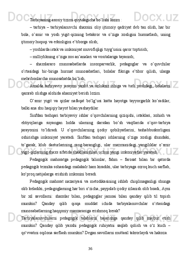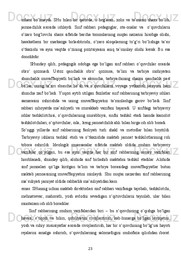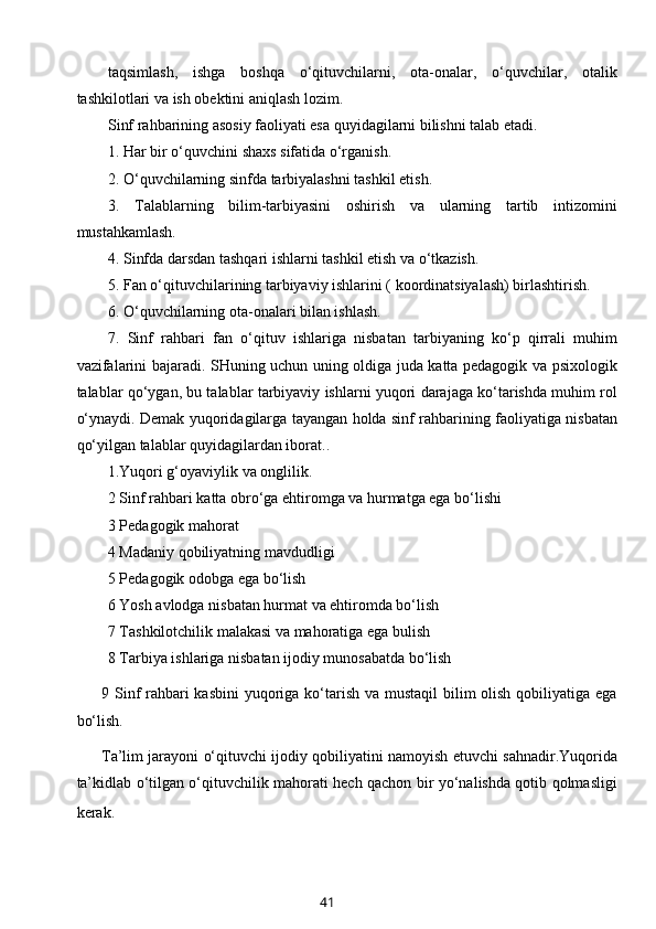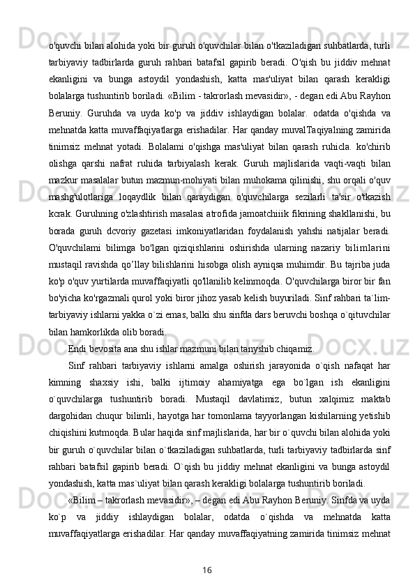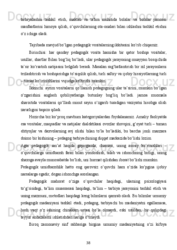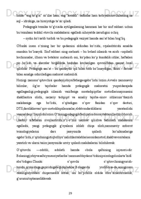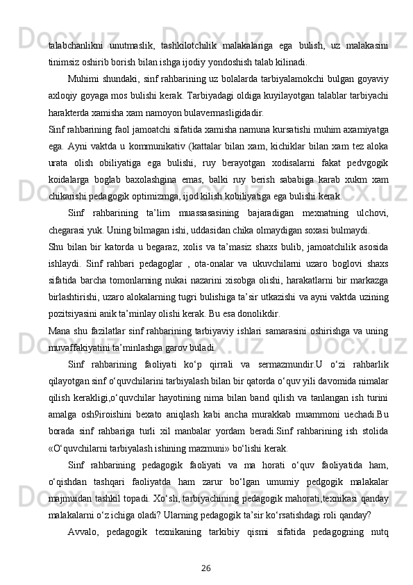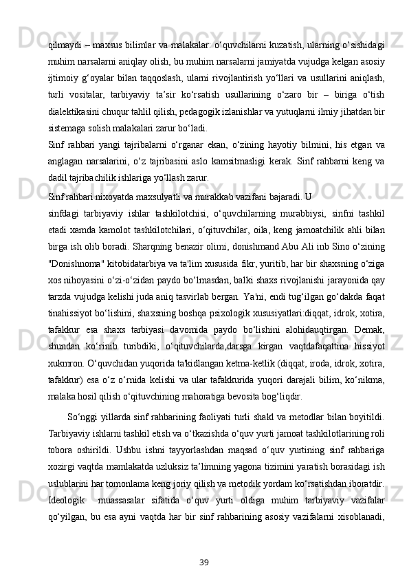 Tarbiyaviy ishlarni amalga oshirishda sinf rahbarining pedagogik mahorati