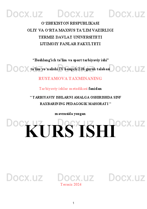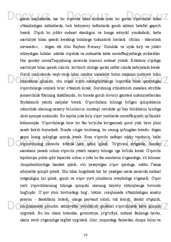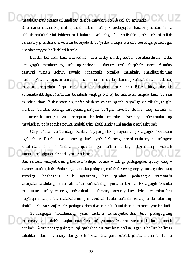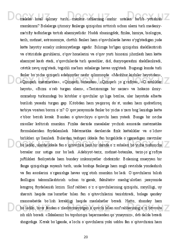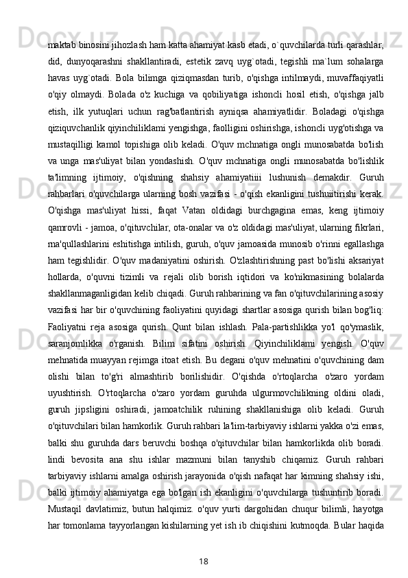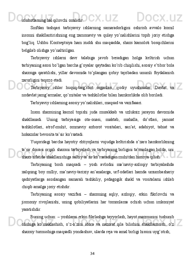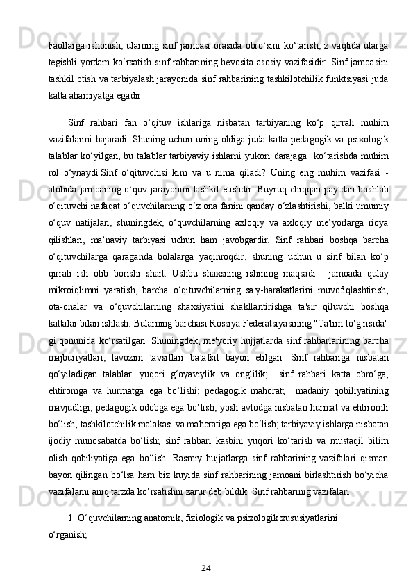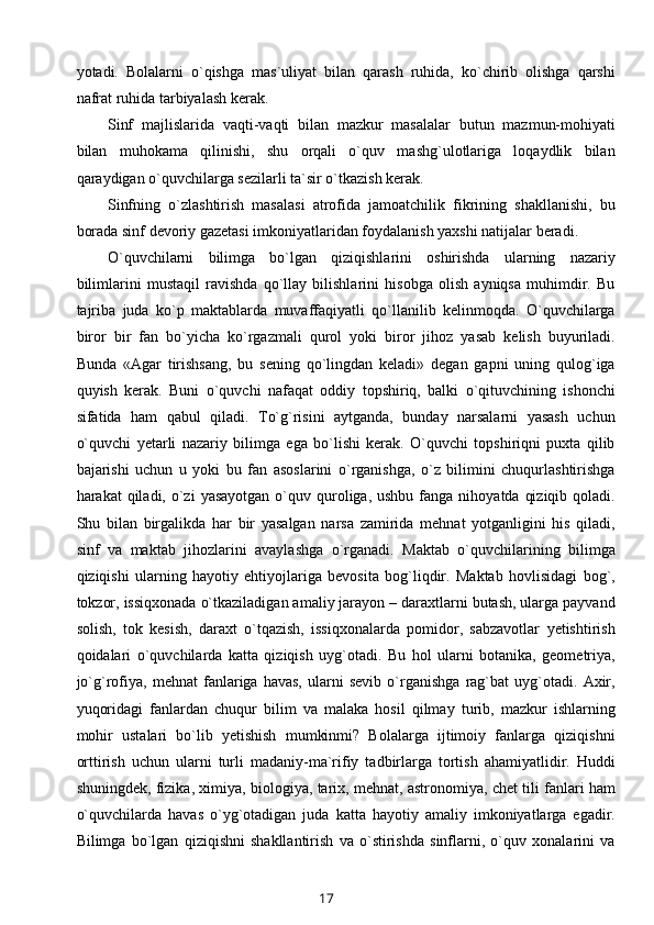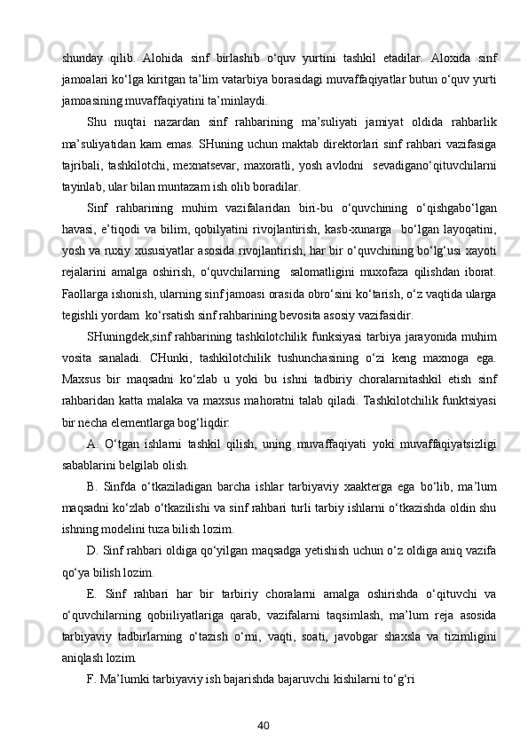 Tarbiyaviy ishlarni amalga oshirishda sinf rahbarining pedagogik mahorati