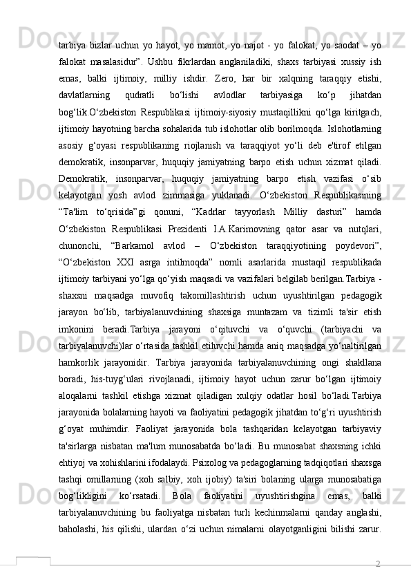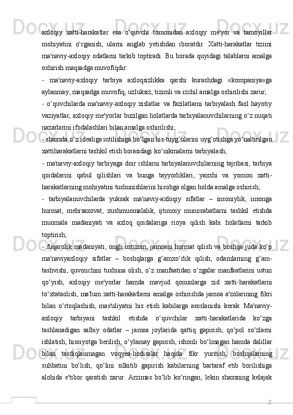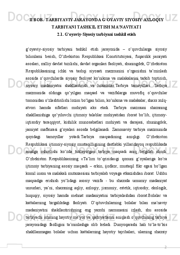 Tarbiyaviy jarayonda g‘oyaviy siyosiy axloqiy tarbiyani tashkil etish ma'naviyati
