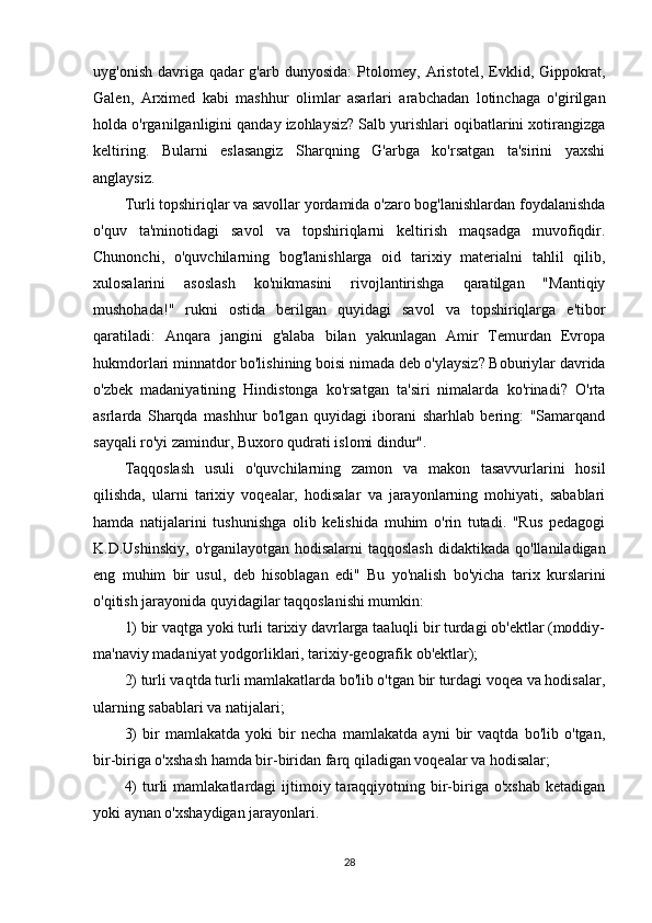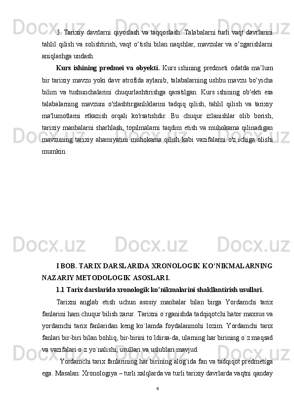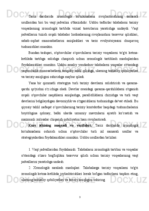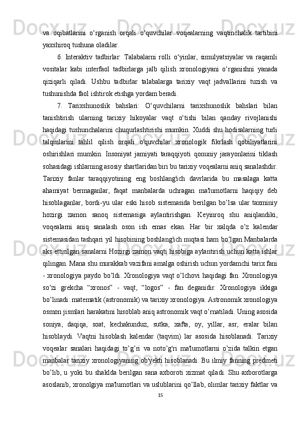 Tarix darslarida xronologik ko'nikmalarni shakllantirish usullari