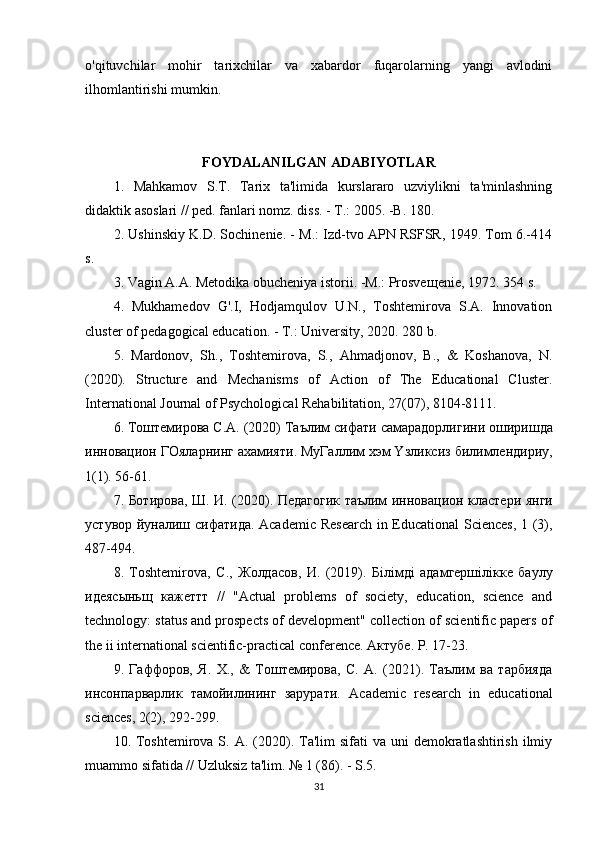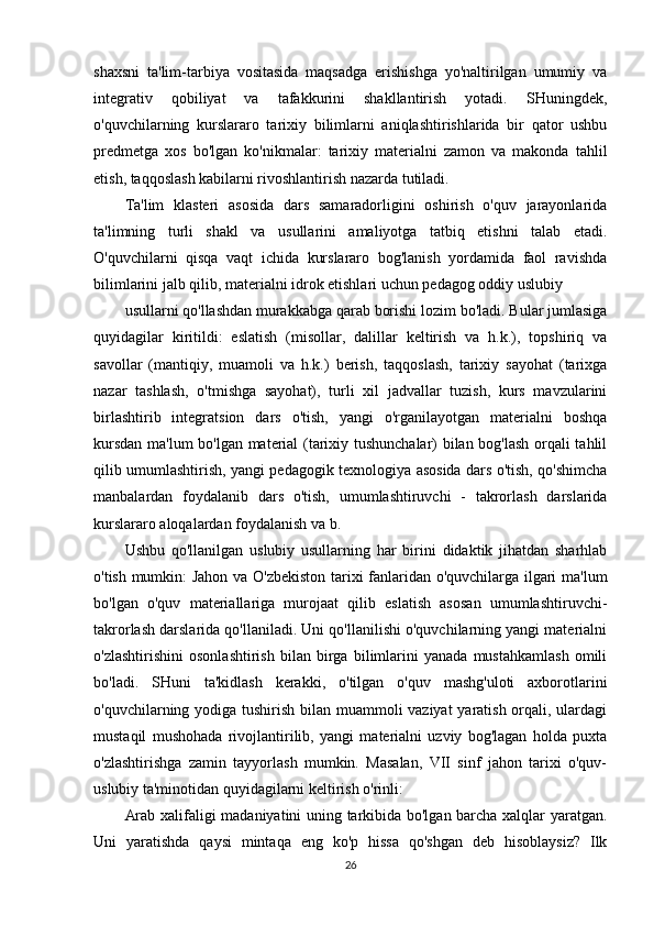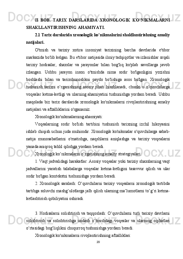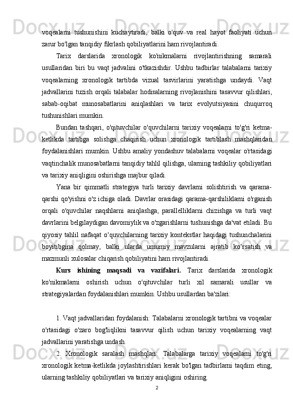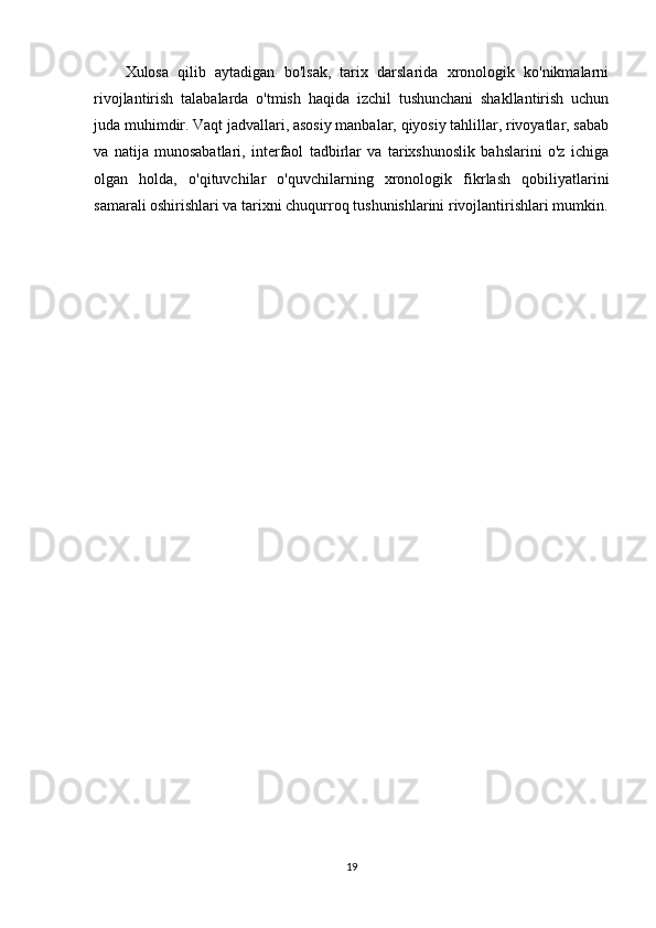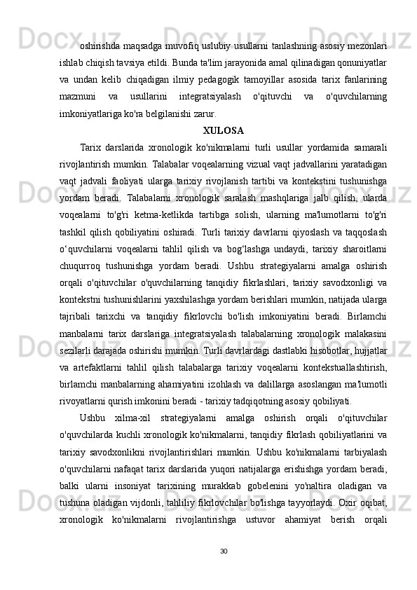 Tarix darslarida xronologik ko'nikmalarni shakllantirish usullari