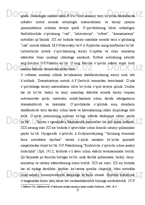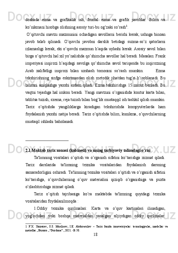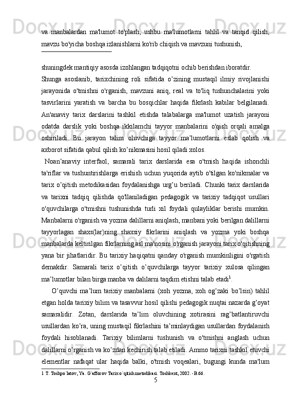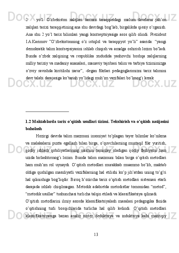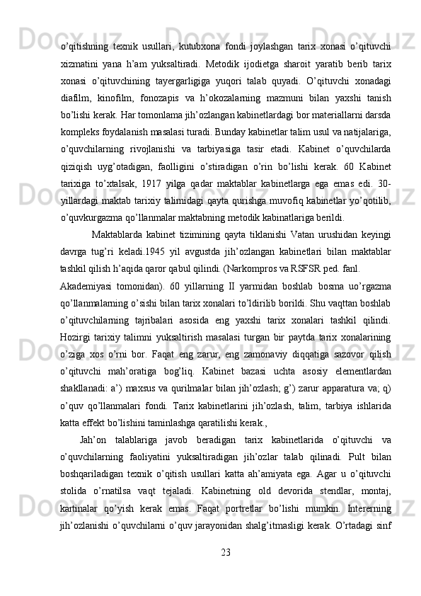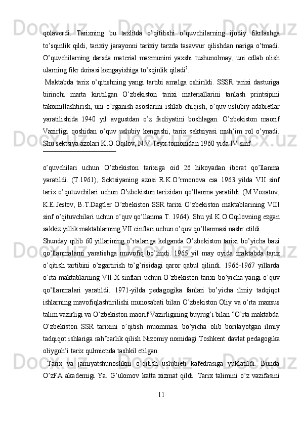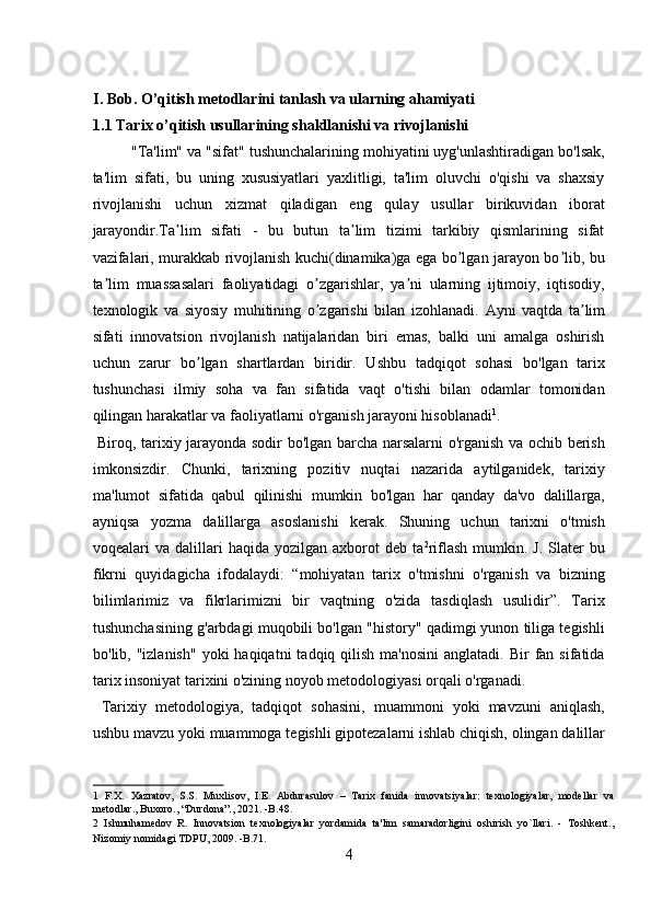 Tarix o’qitish usullarining shakllanishi va rivojlanishi