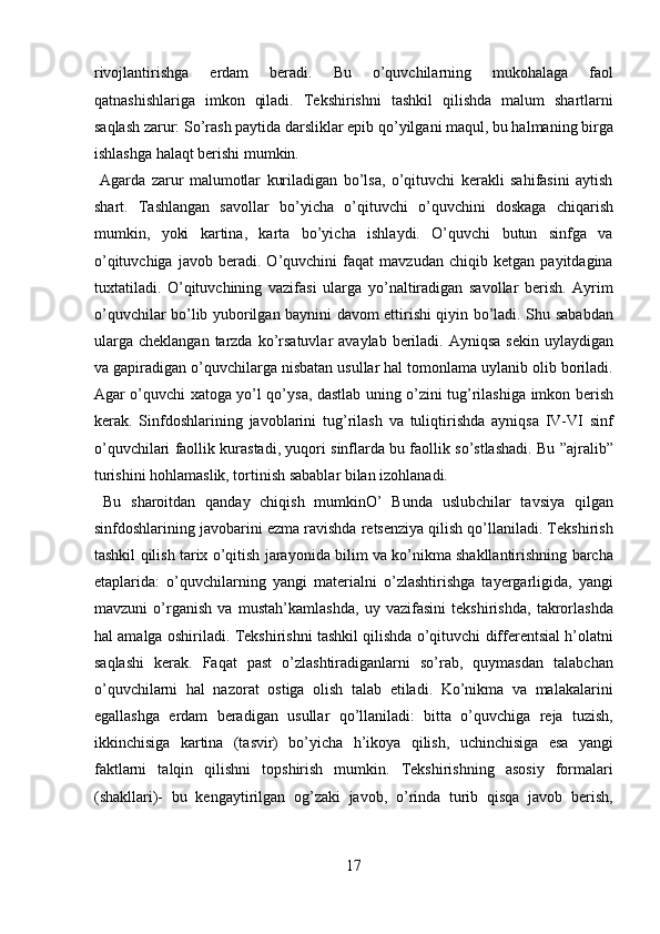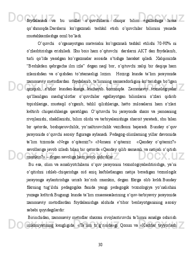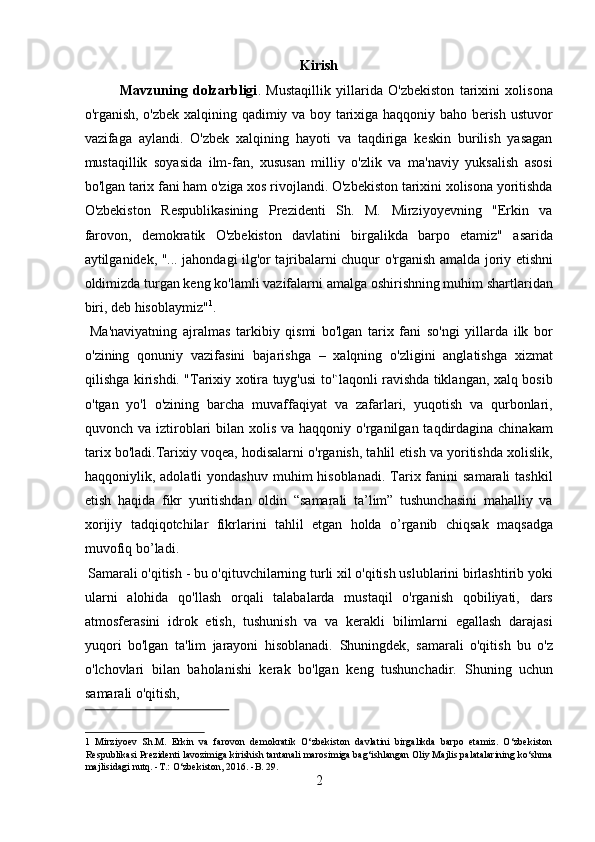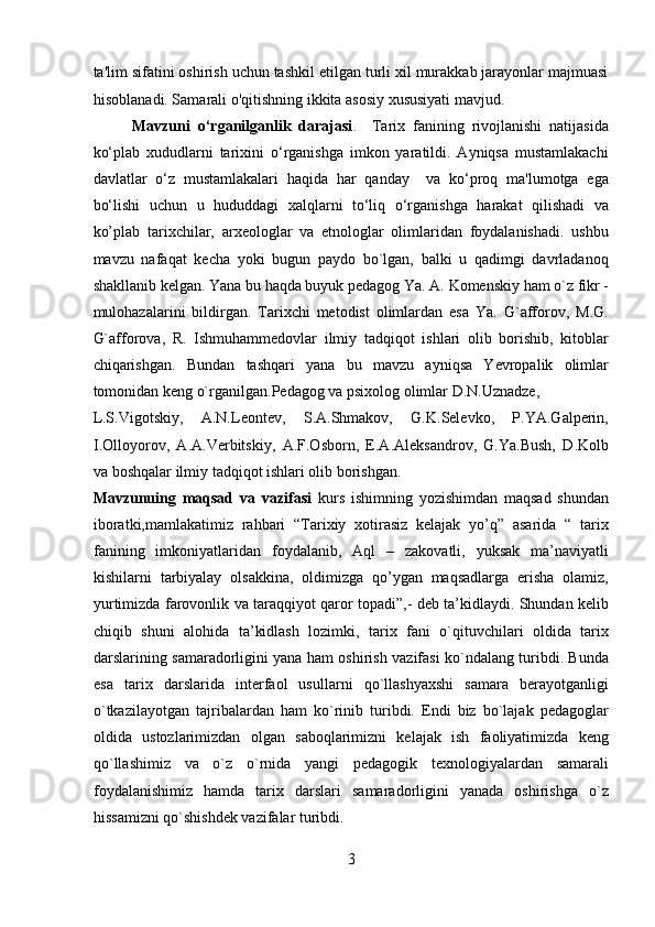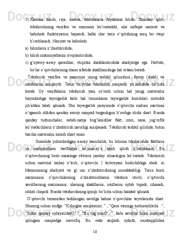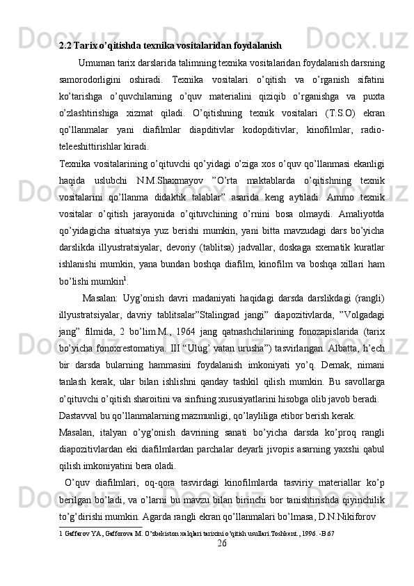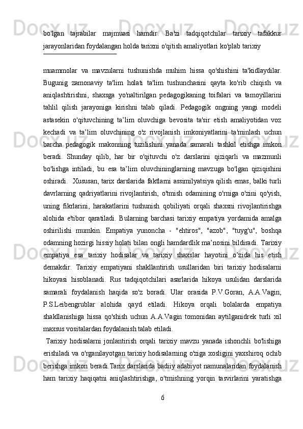 Tarix o’qitish usullarining shakllanishi va rivojlanishi