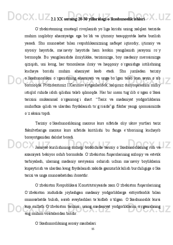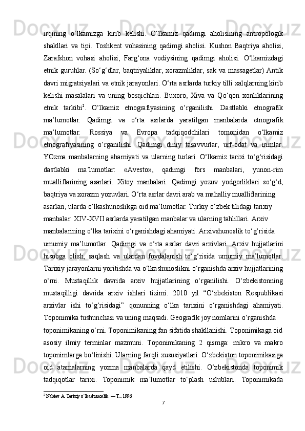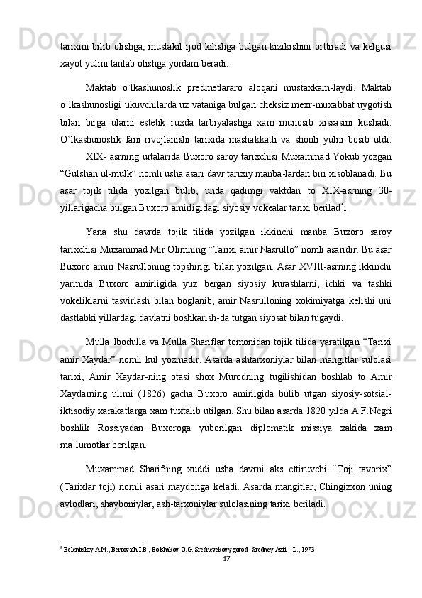 Tarixiy o'lkashunoslik fani shakllanishiga doir dastlabki ma'lumotlar