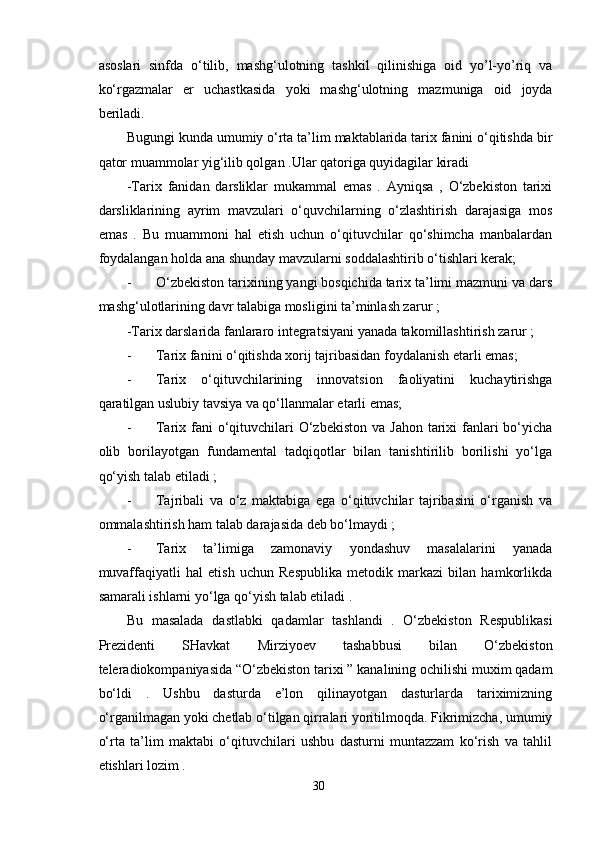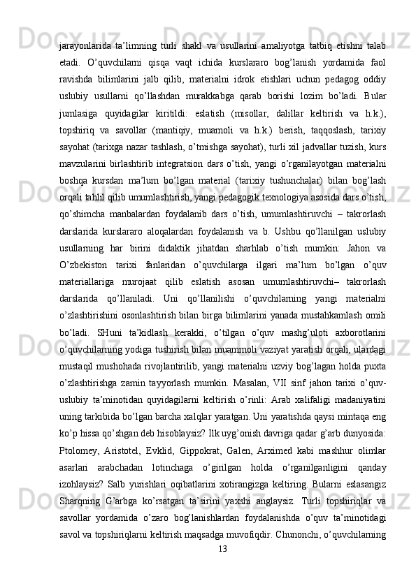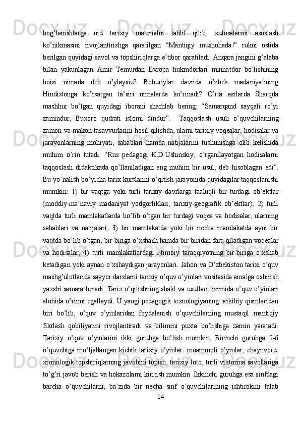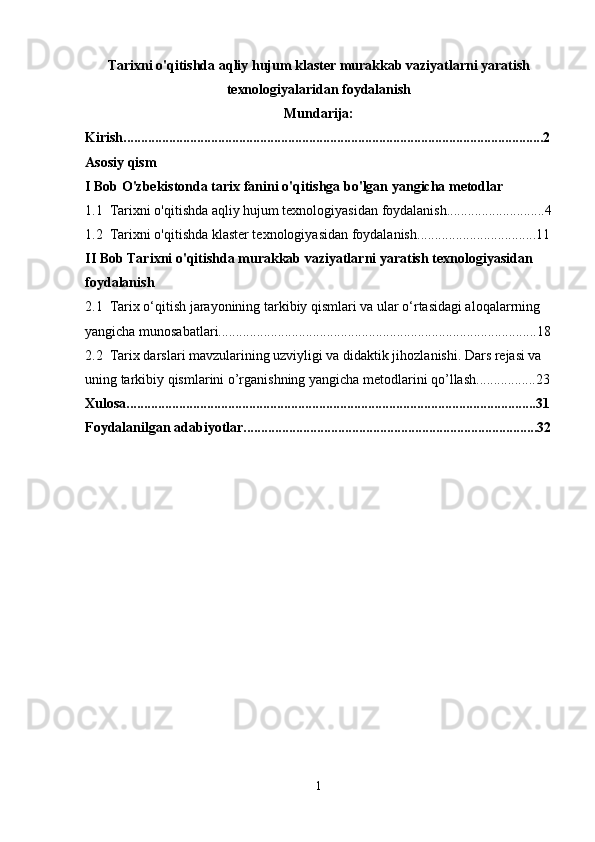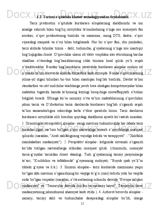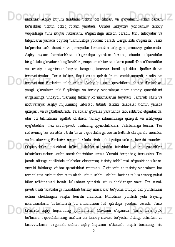 Tarixni o'qitishda aqliy hujum klaster murakkab vaziyatlarni yaratish texnologiyalaridan foydalanish