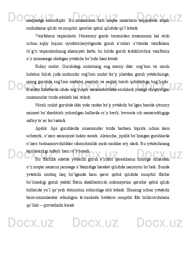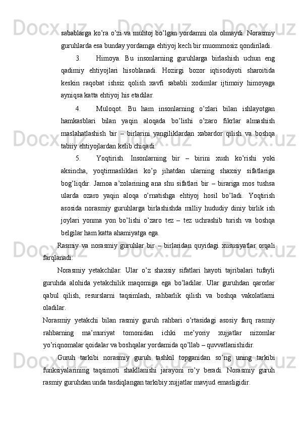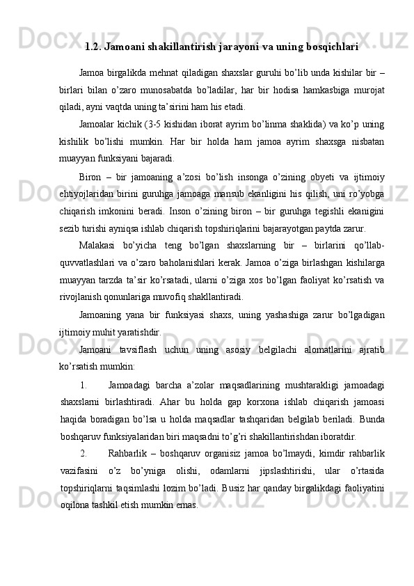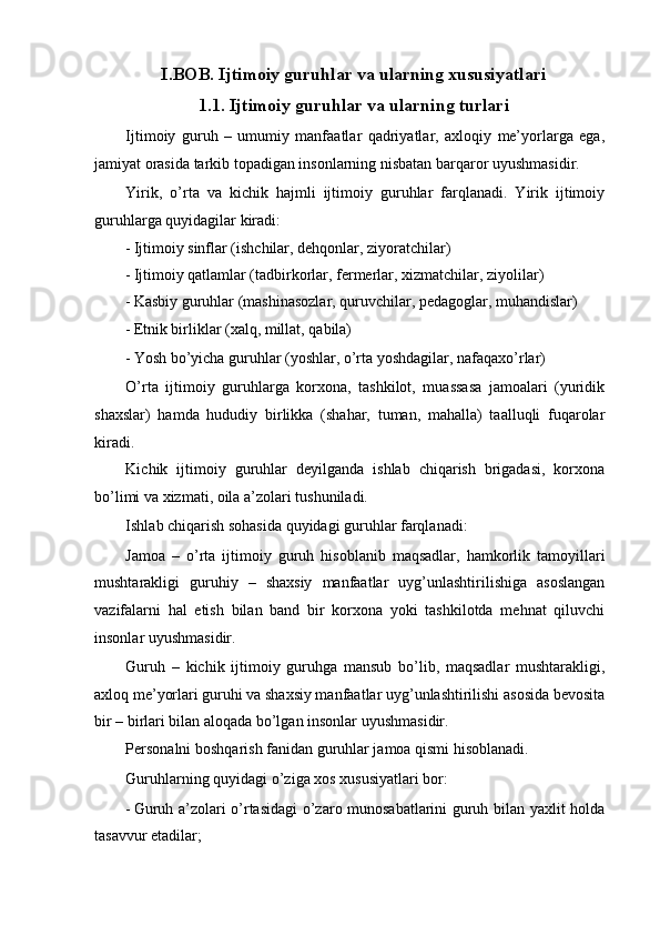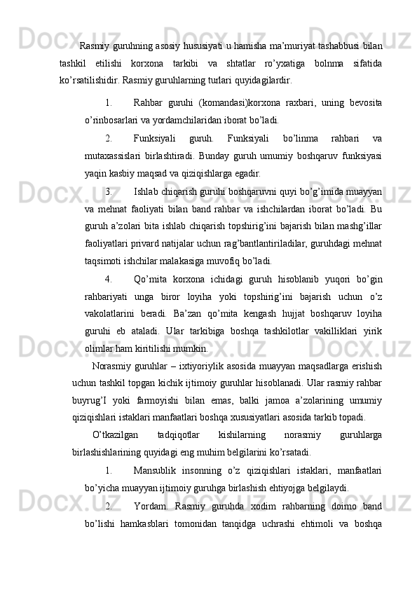 Tashkilotda personalni boshqarishda guruhlararo munosabatlarning o’rni va mohiyati