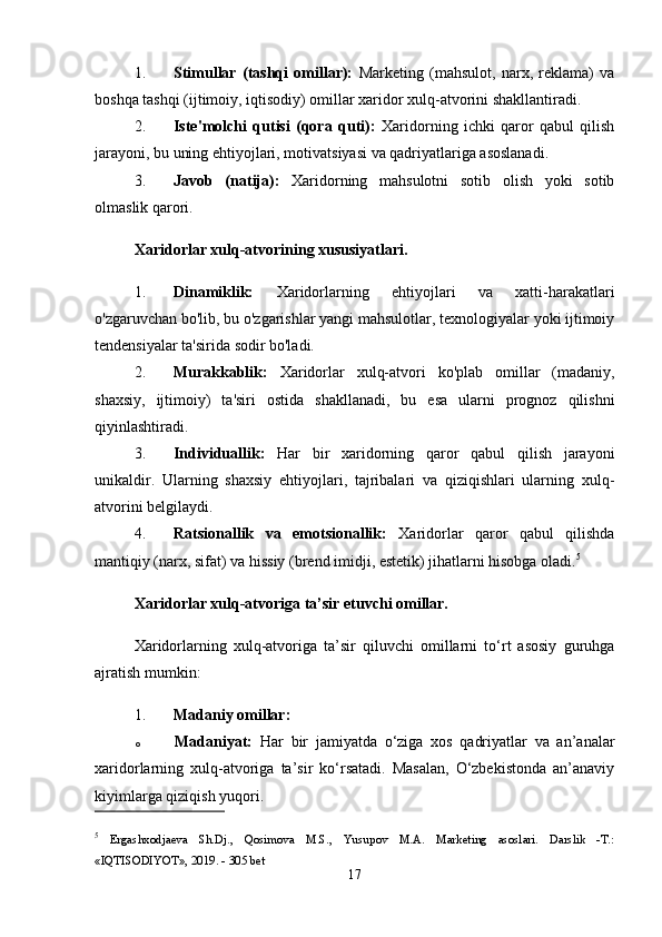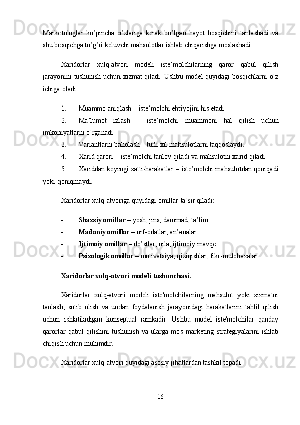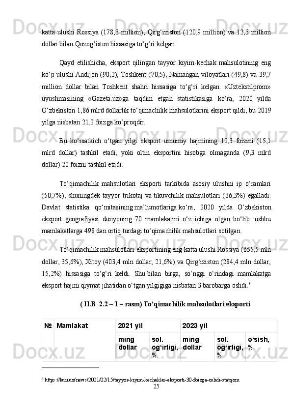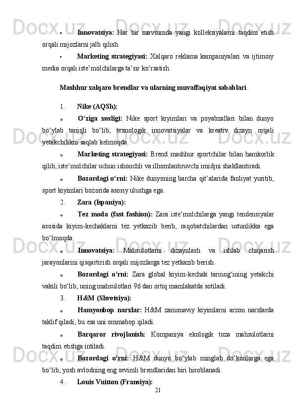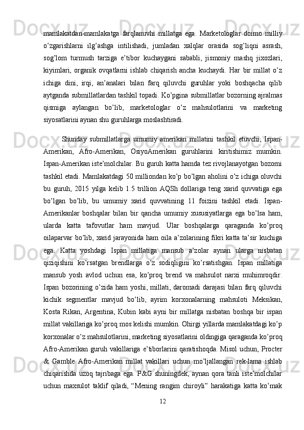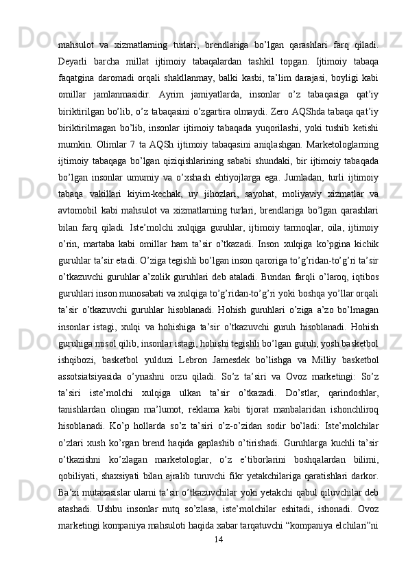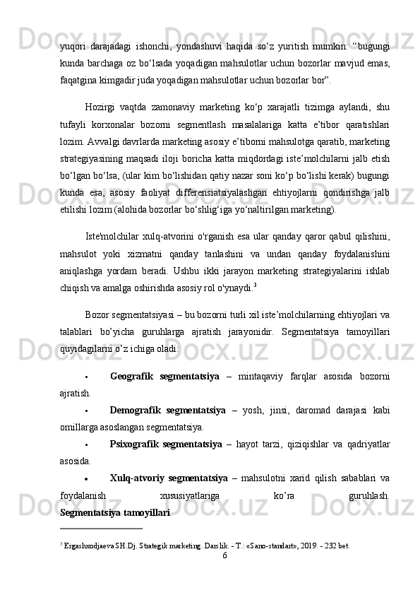 Tayyor kiyim-kechak mahsulotlari bozor segmentatsiyasi va iste’molchilar xulq-atvorini o’rganish