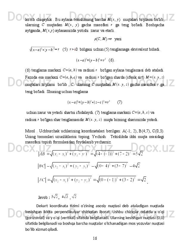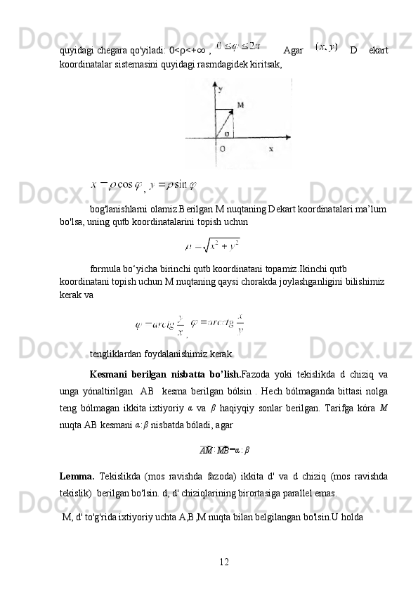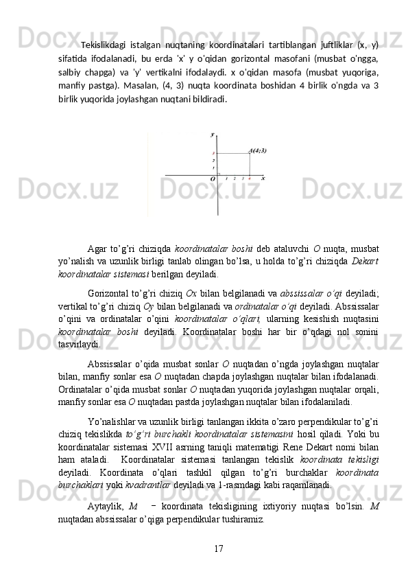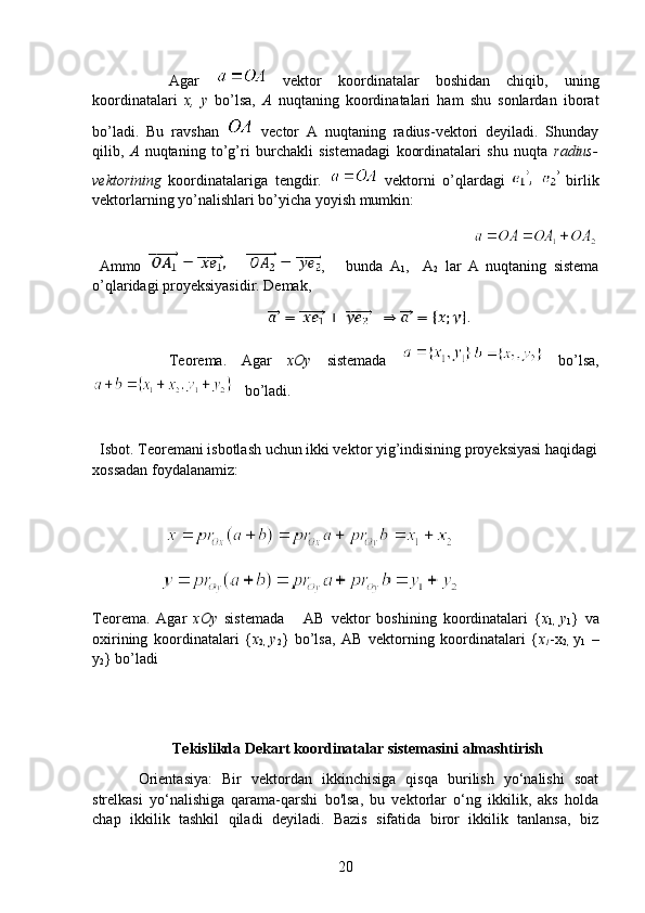 Tekislikda koordinatalar metodi. Tekislikda koordinatalar usuli