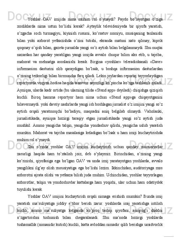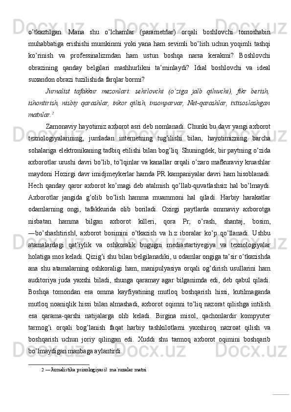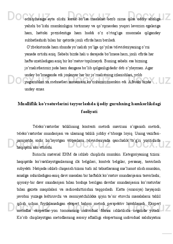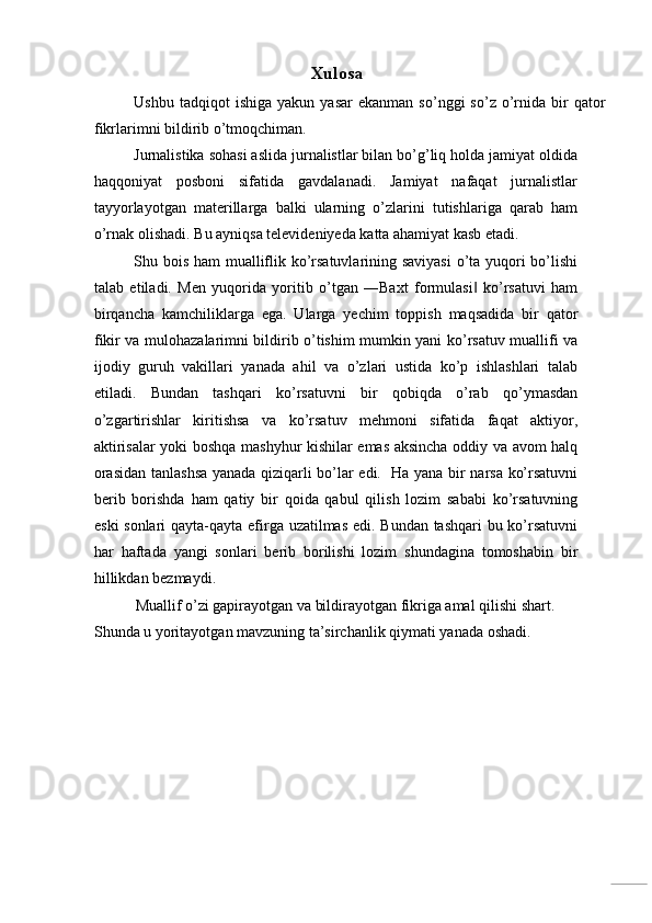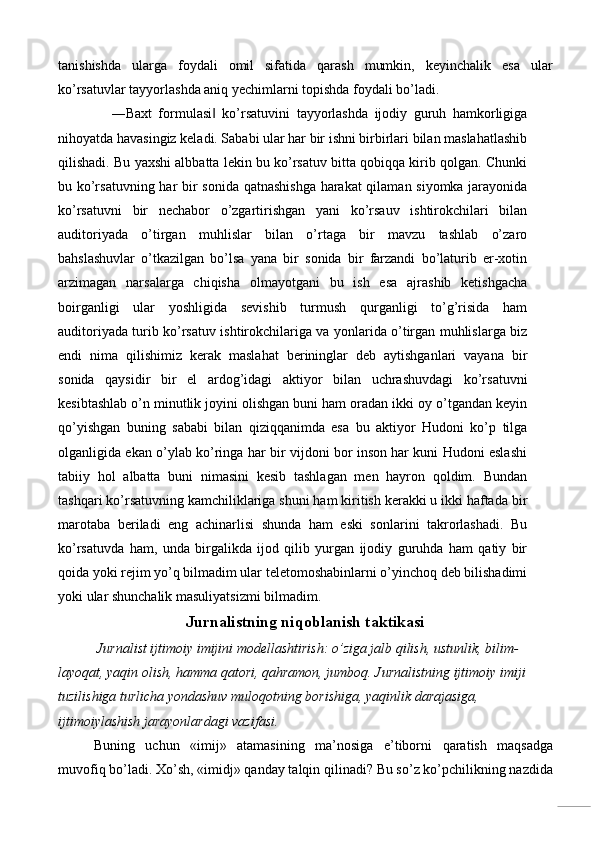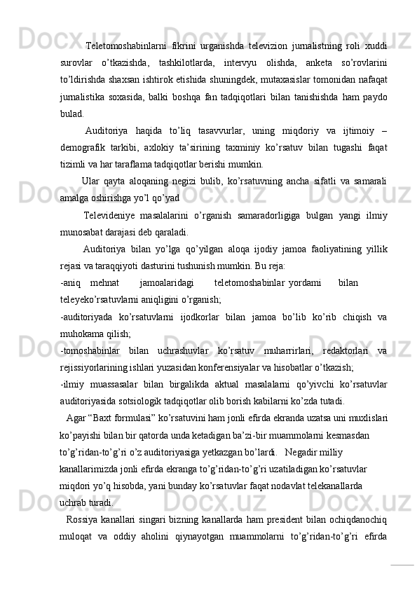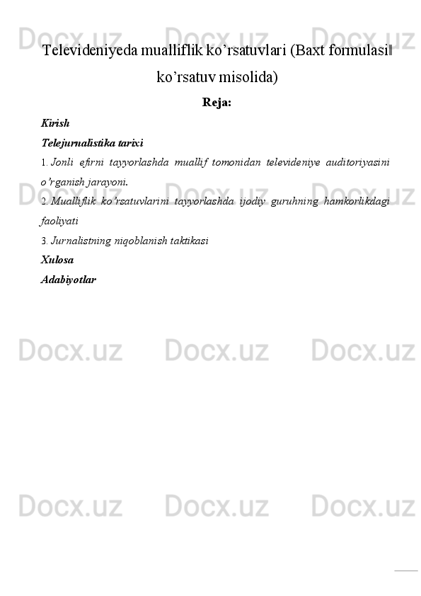 Televideniyeda mualliflik ko’rsatuvlari (Baxt formulasi‖ ko’rsatuv misolida)