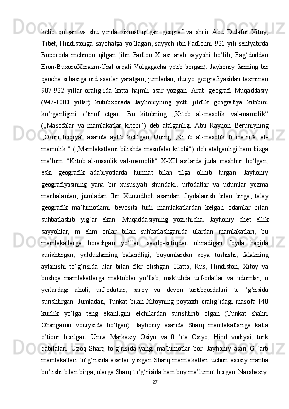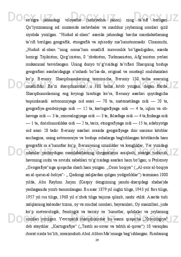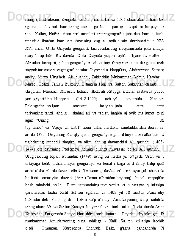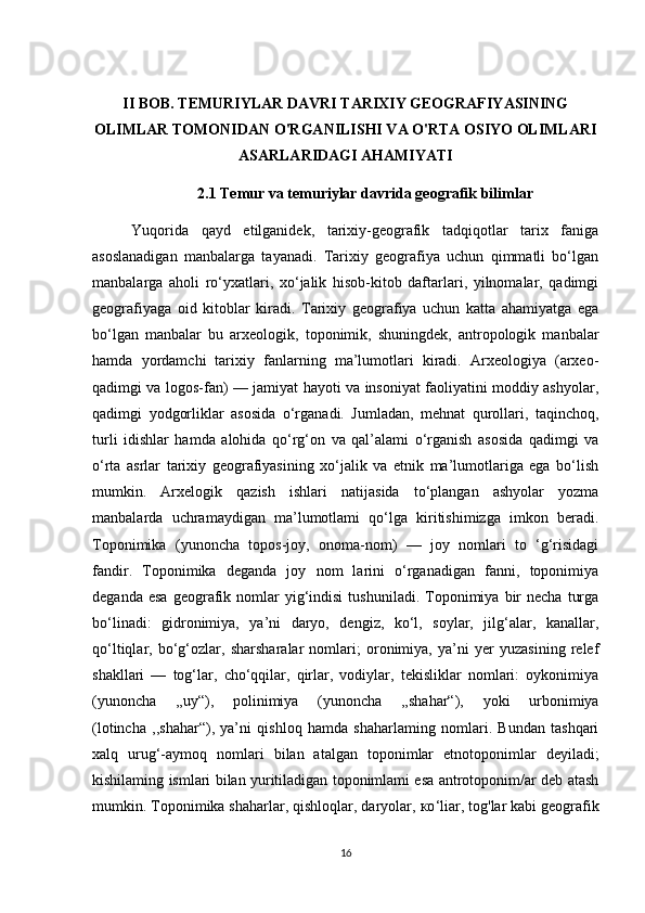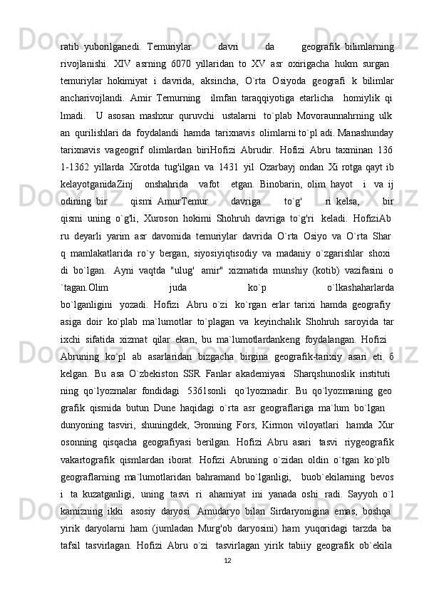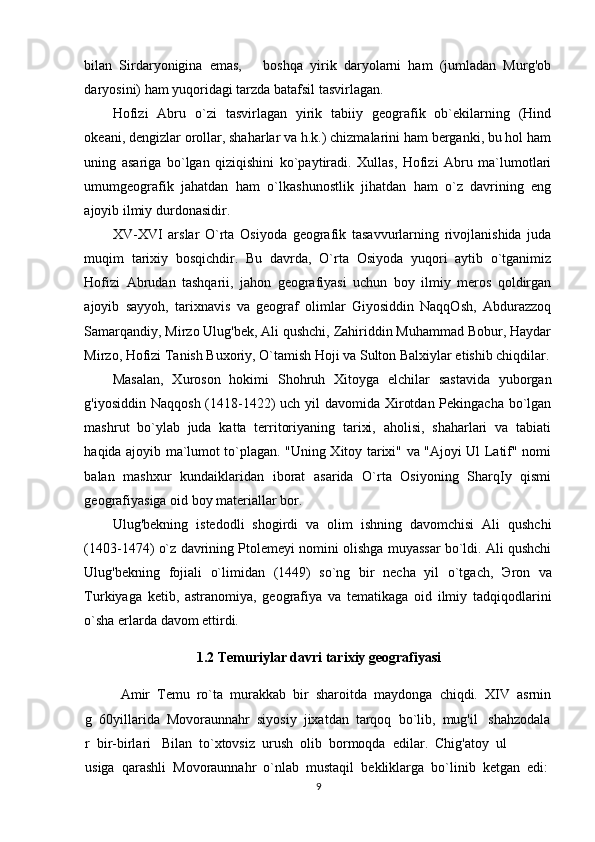 Temuriylar davri tarixiy geografiyasining olimlar tomonidan o'rganilishi