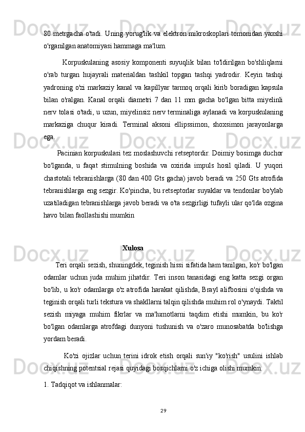 Teri tuyish orqali ko'rishning suniy usuli. Ko'zi ojizlar misolida