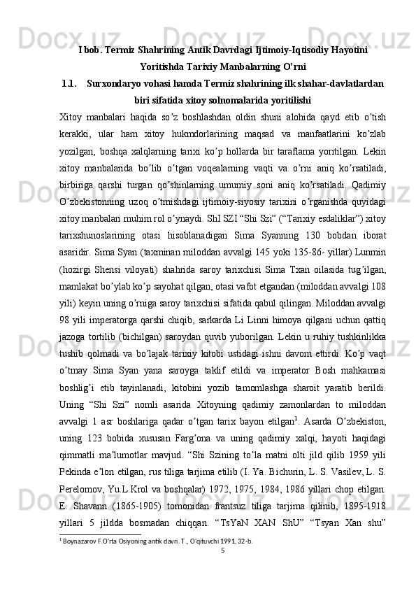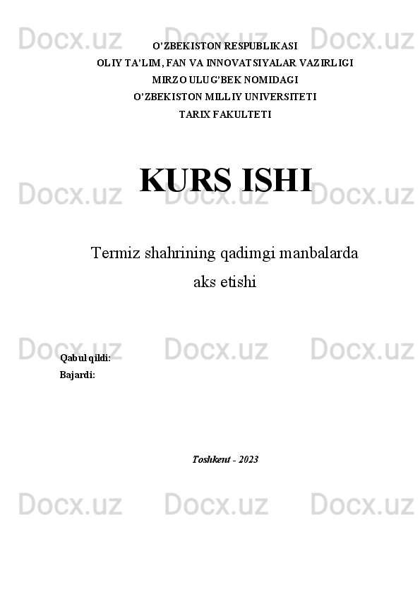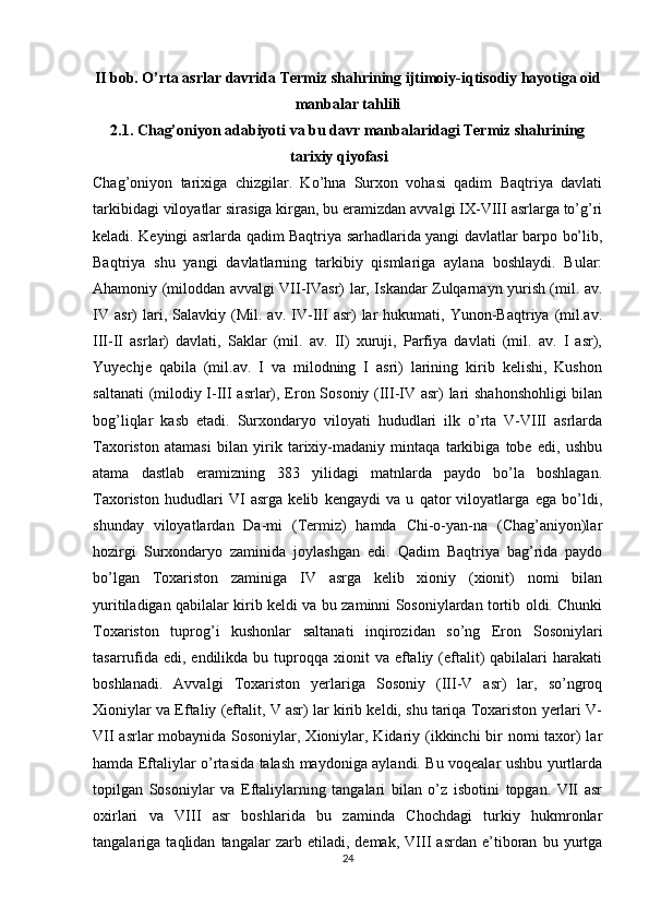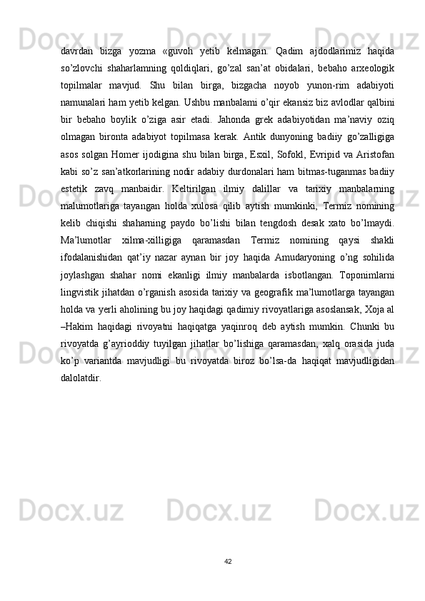 Termiz shahrining qadimgi manbalarda aks etishi