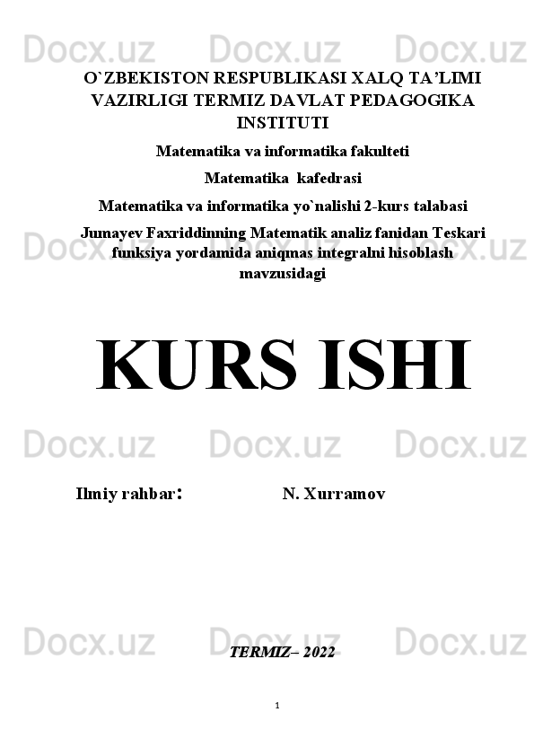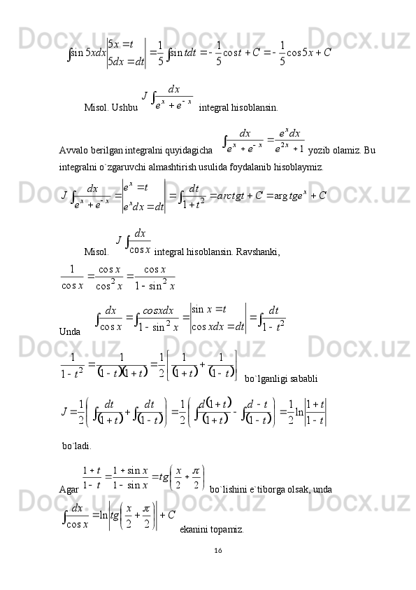 Teskari funksiya yordamida aniqmas integralni hisoblash