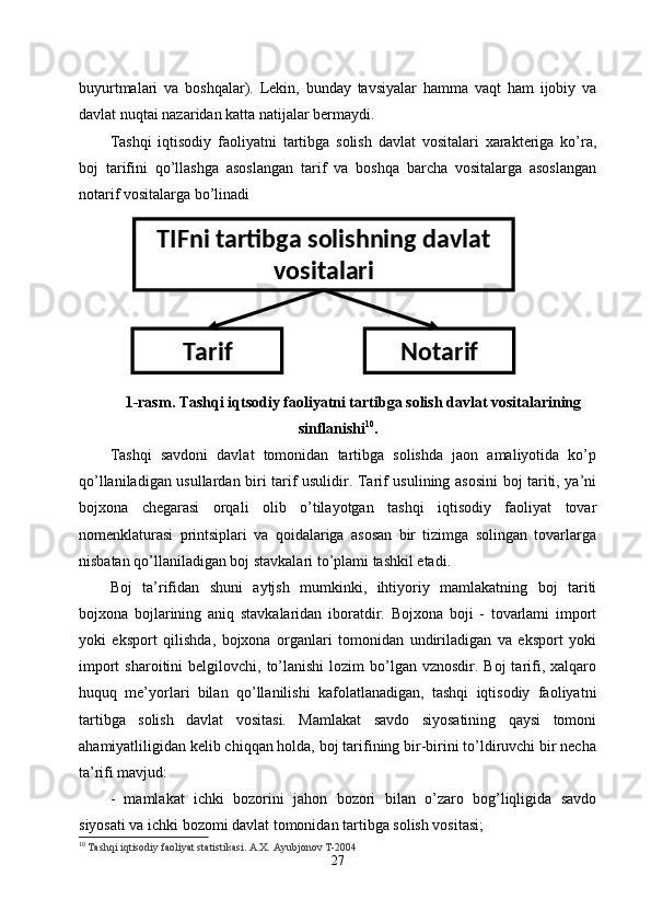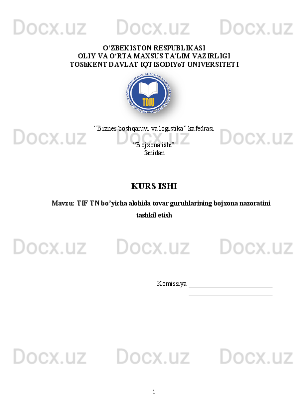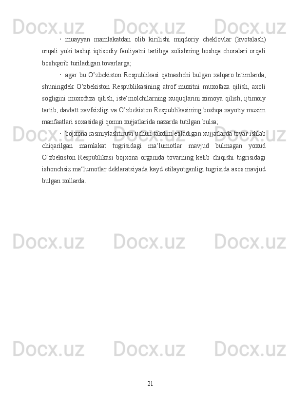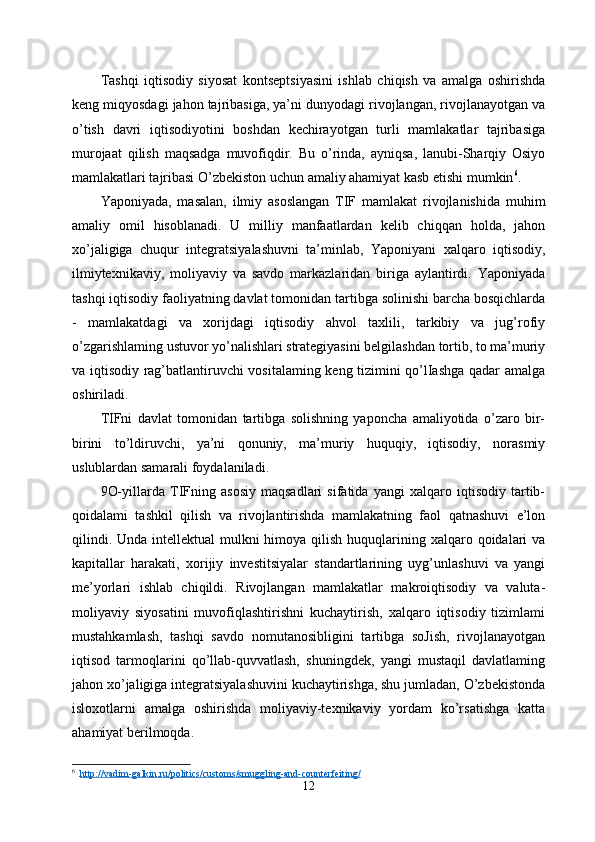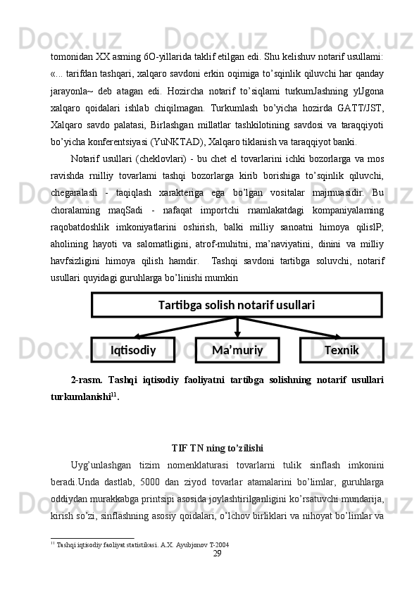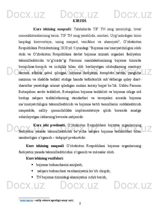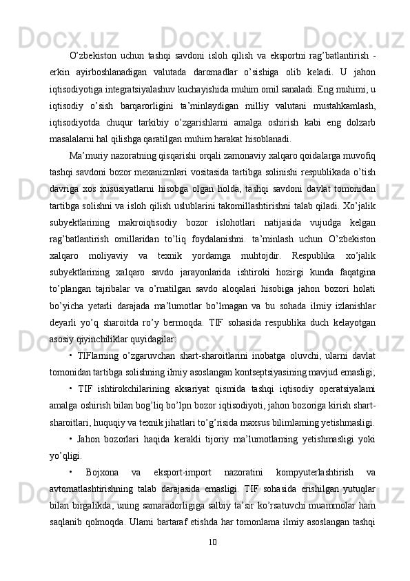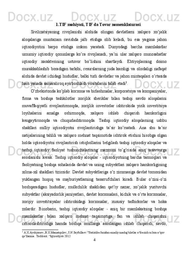TIF TN boʼyicha alohida tovar guruhlarining bojxona nazoratini tashkil etish