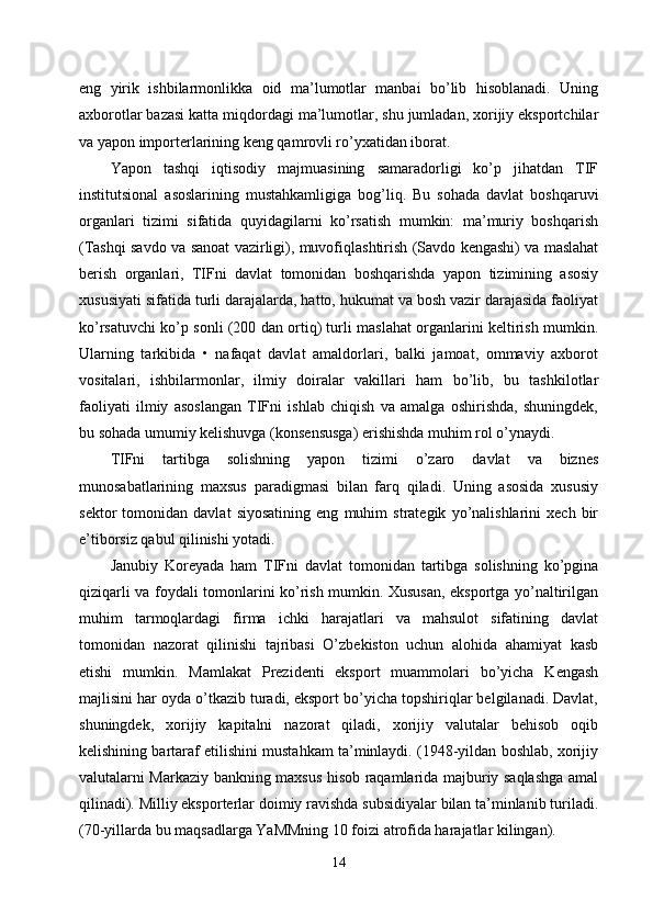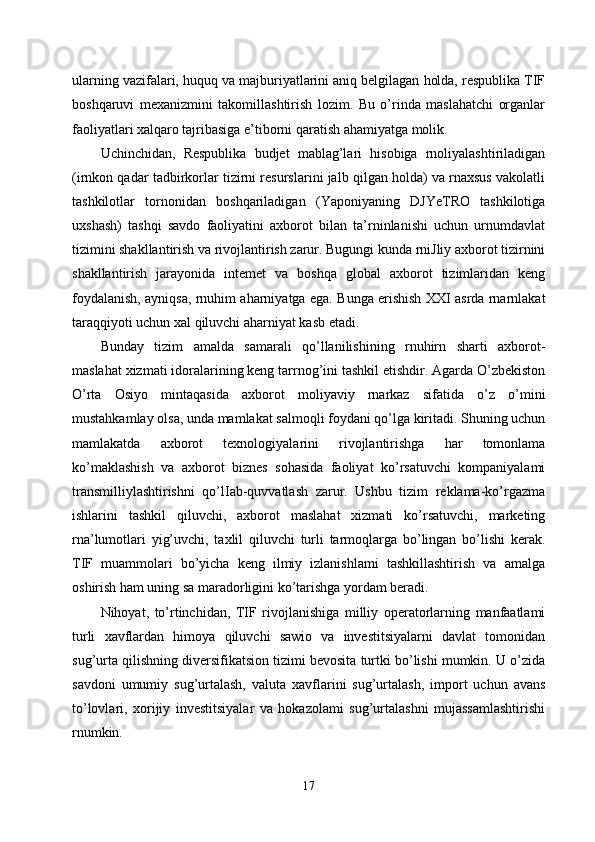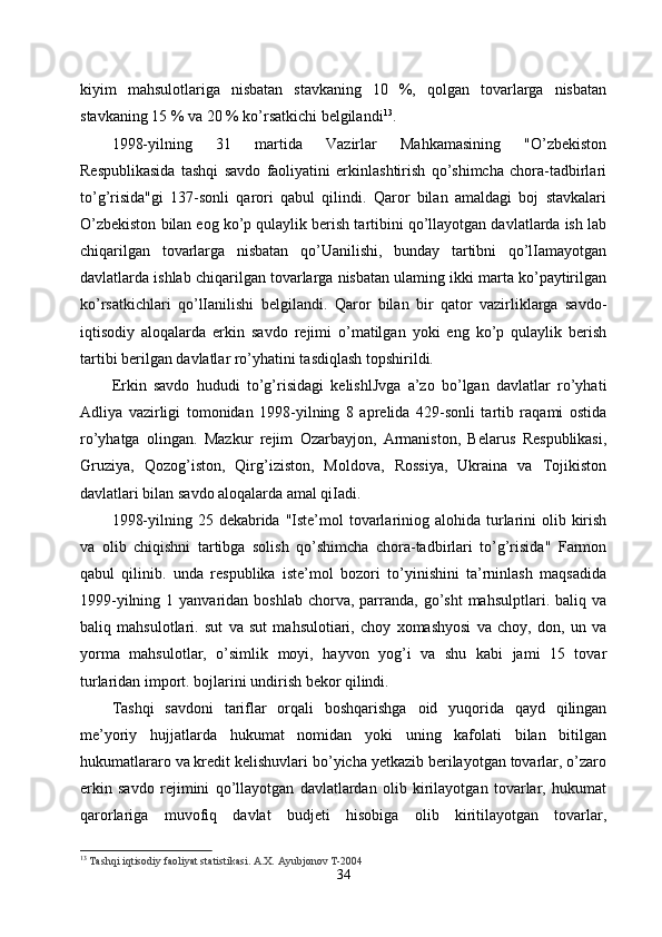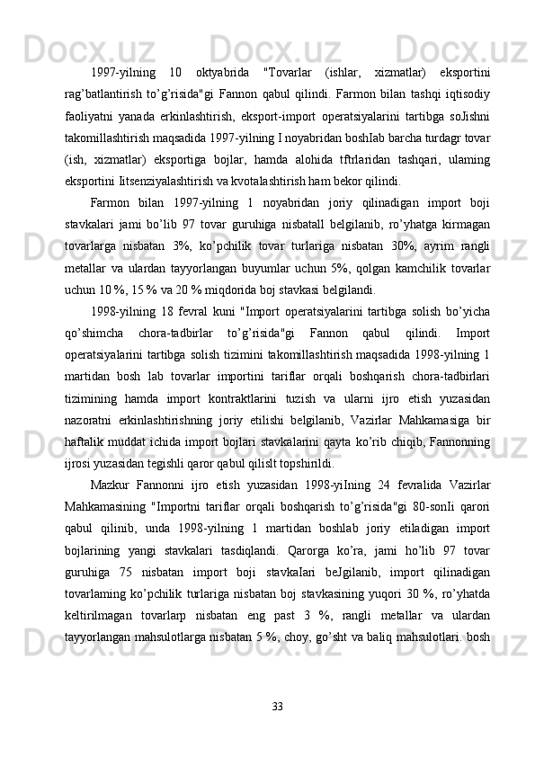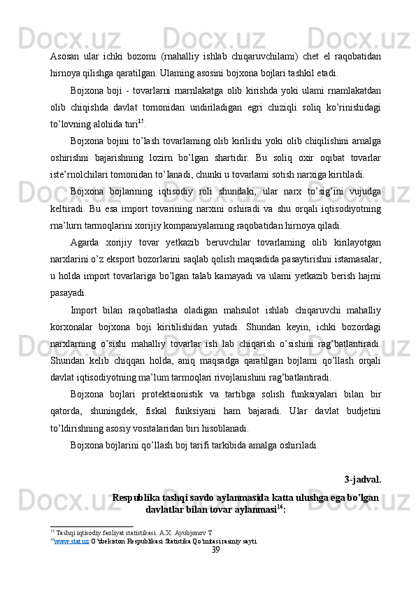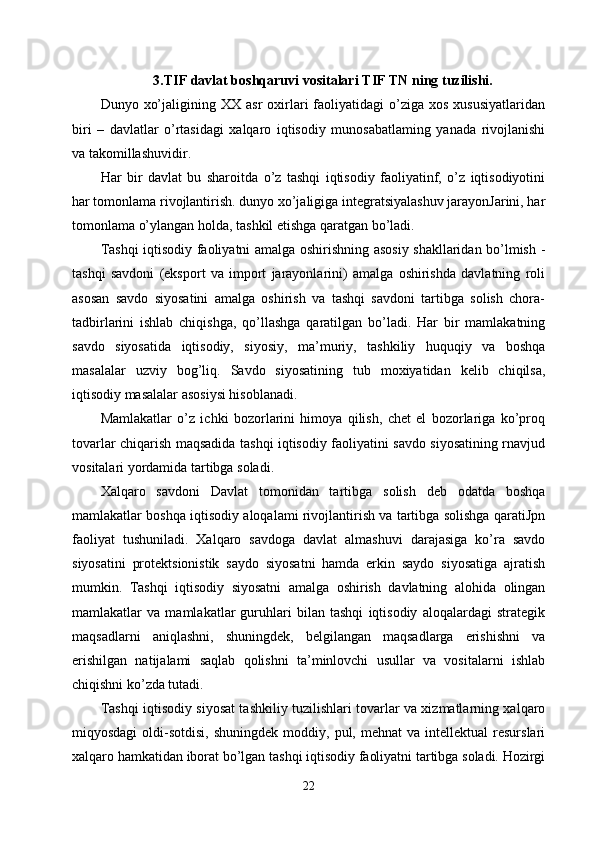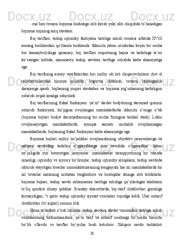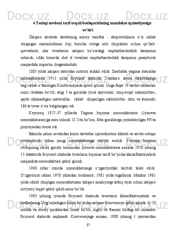 TIF TN boʼyicha alohida tovar guruhlarining bojxona nazoratini tashkil etish