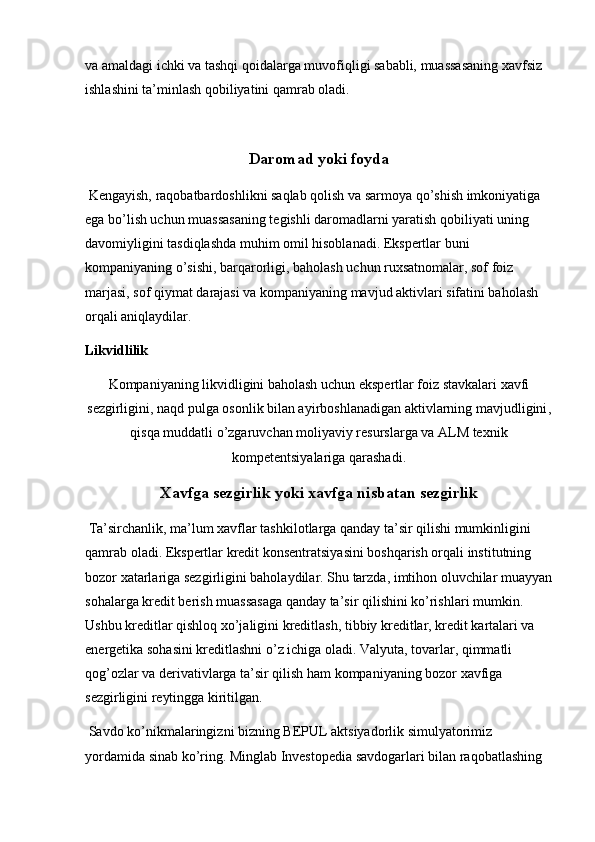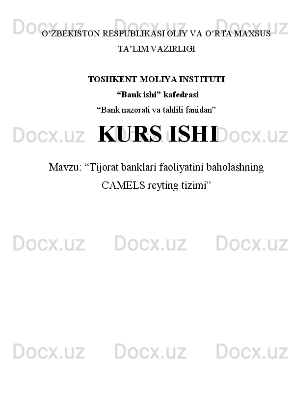 Tijorat banklari faoliyatini baholashning CAMELS reyting tizimi