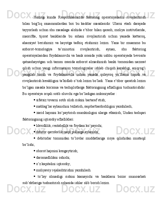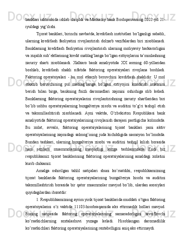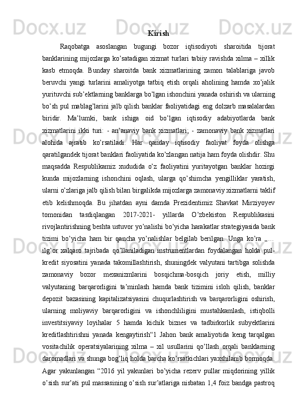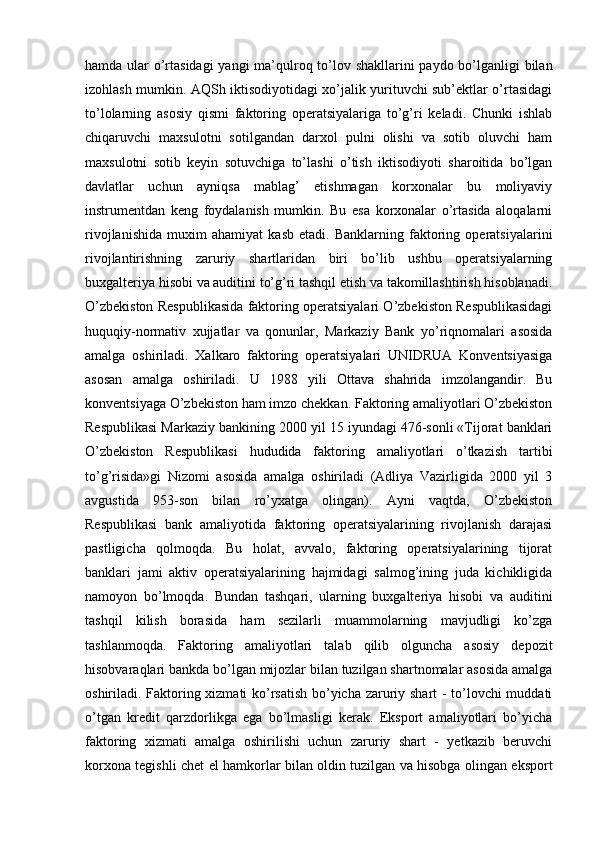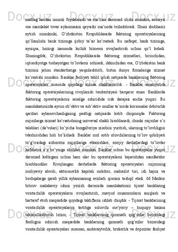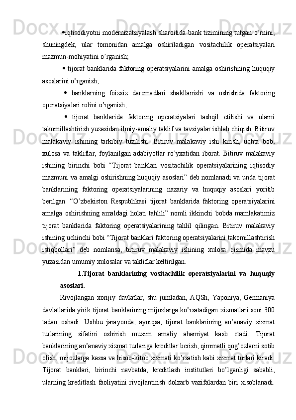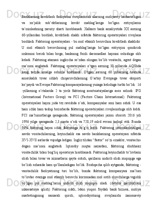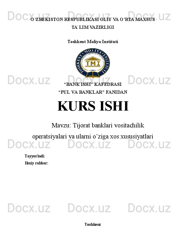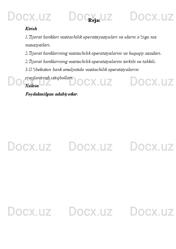 Tijorat banklari vositachilik operatsiyalari va ularni o’ziga xos xususiyatlari
