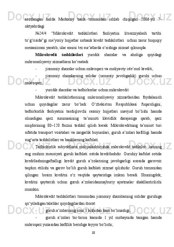 15-sentyabrdagi   50-sonli   “Mikromoliyalash   to‘g‘risida”gi,   2006-yil   20-