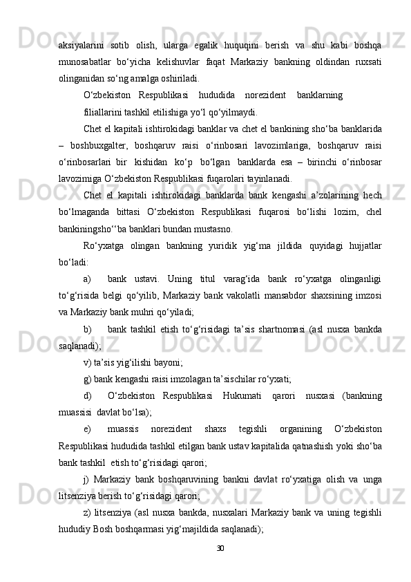 Xorijiy   kapital   ishtirokidagi   banklar   hujjatlarni   O‘zbekiston   Respublikasi
