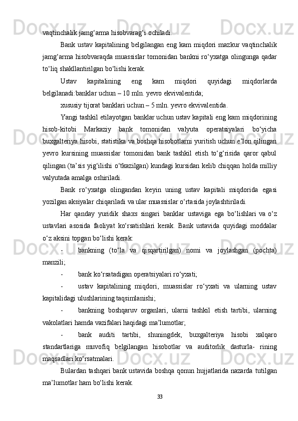 miqdorda bank ustav kapitalini shakllantirish hamda ustav   kapitaliga yo‘naltirilgan
