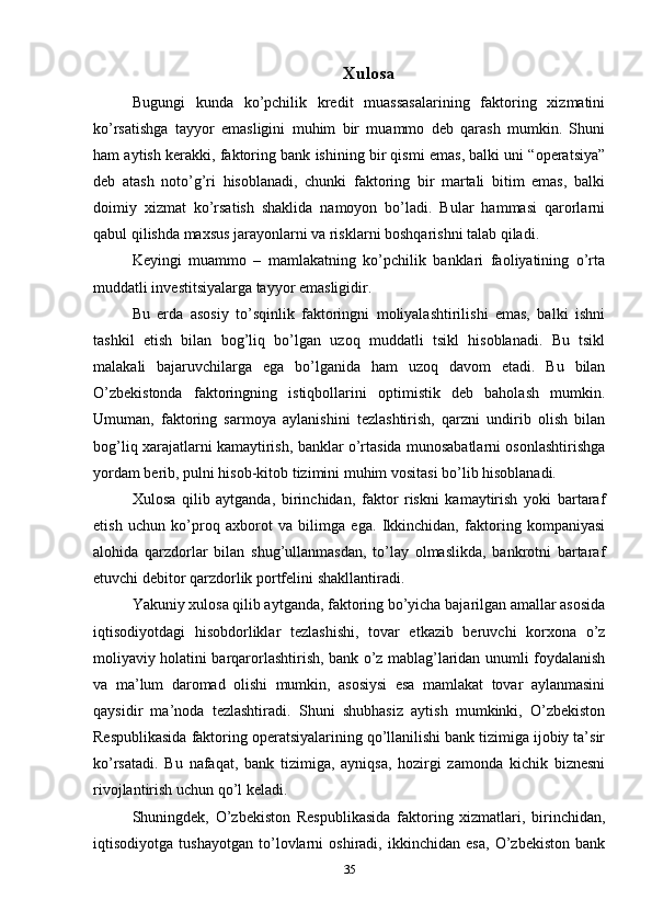 Faktoring   mijozlarga   xizmat   ko’rsatishning   universal   shakli   hisoblanadi,