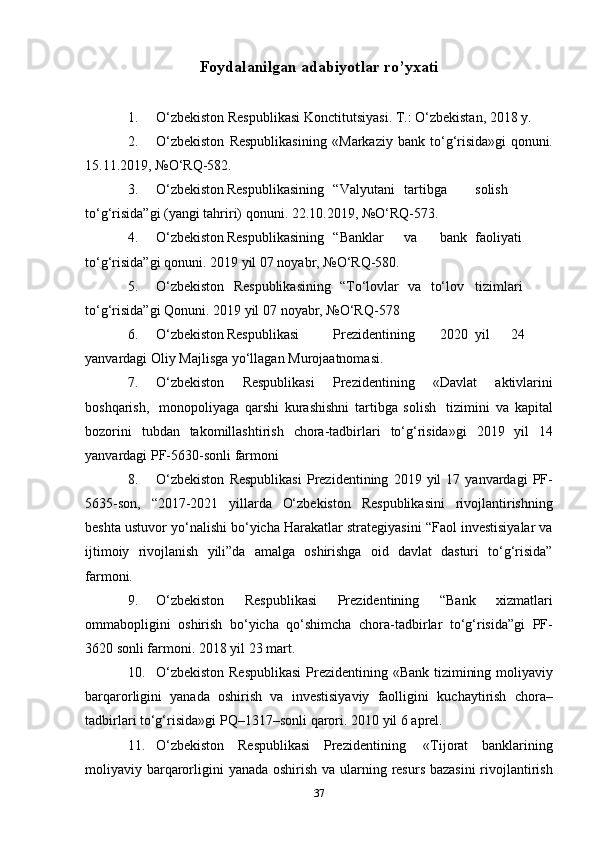 39 O‘zbekiston   Respublikasi   Markaziy   banki   tasdiqlagan   talabnomalar