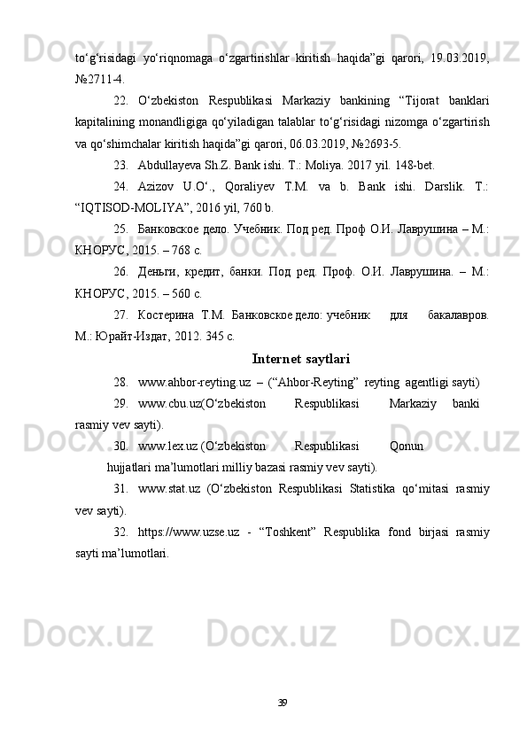23. Abdullayeva   Sh.Z.   Bank   ishi.   T.: Moliya.   2017   yil.   148-bet.