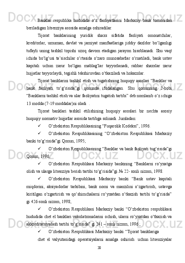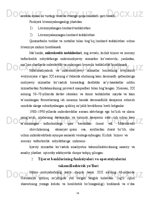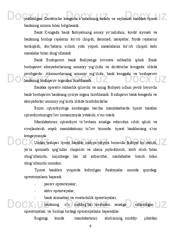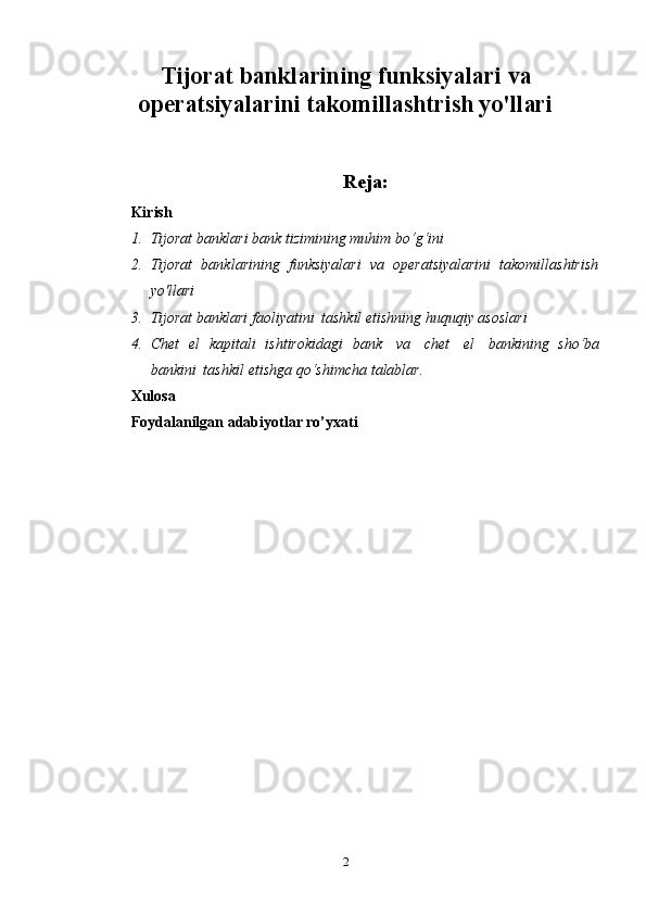 Tijorat banklarining funksiyalari va operatsiyalarini takomillashtrish yo'llari