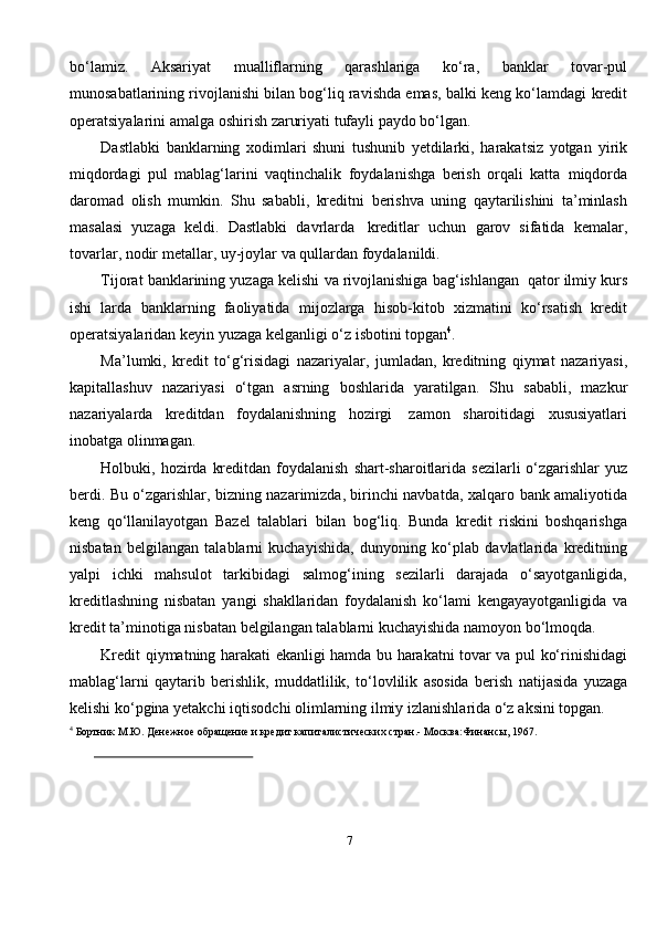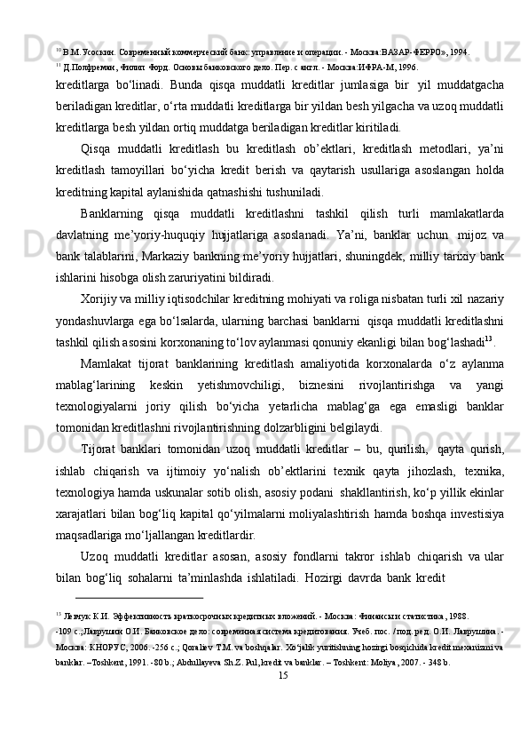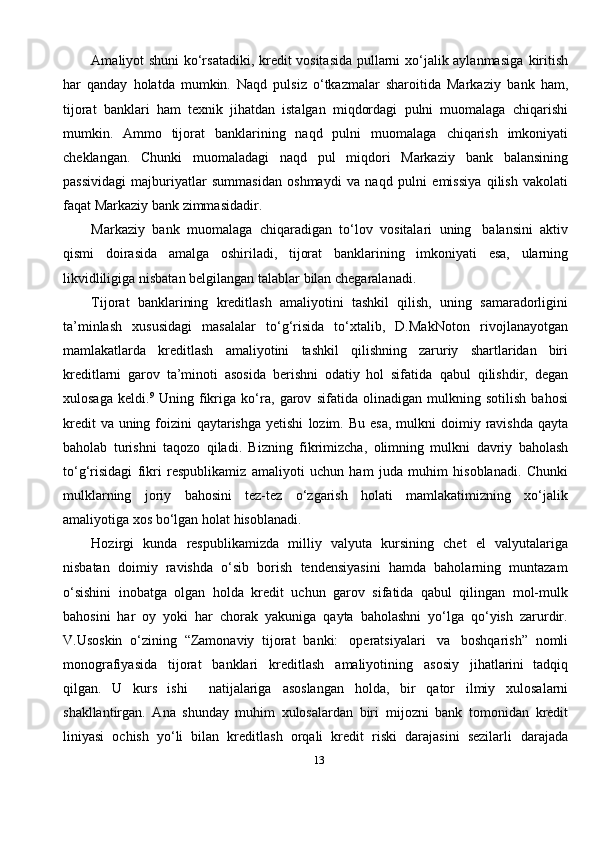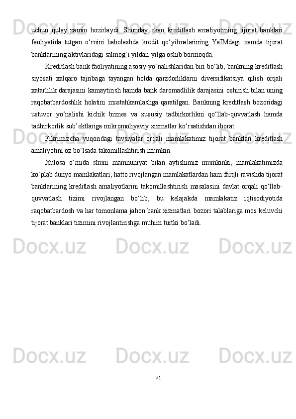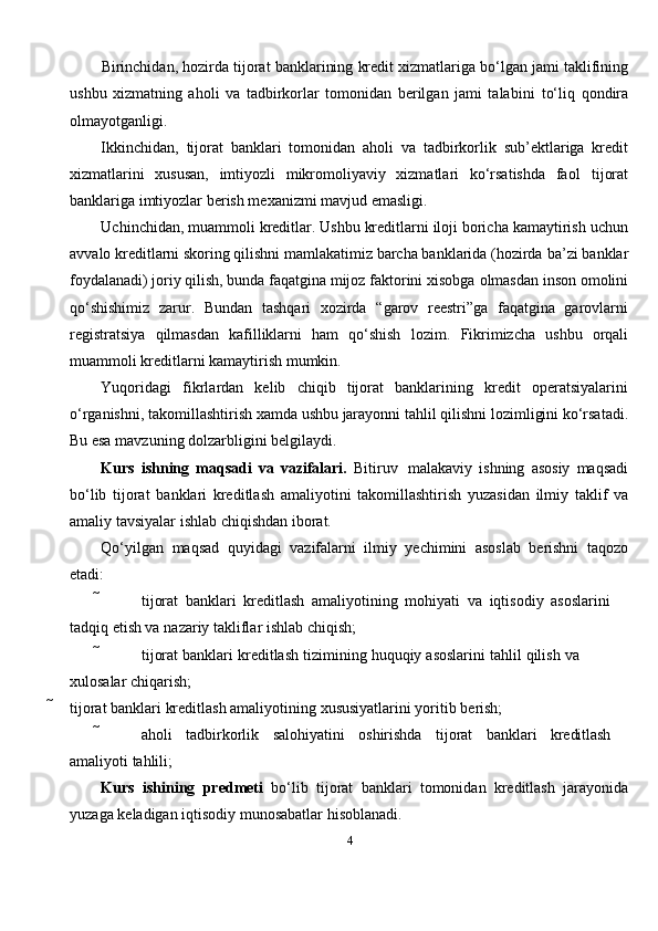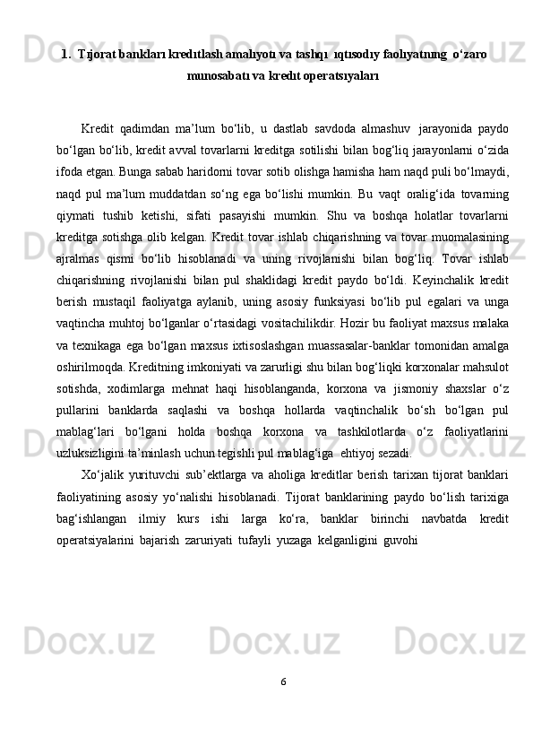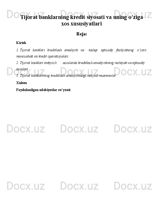 Tijorat banklarning kredit siyosati va uning o’ziga xos xususiyatlari