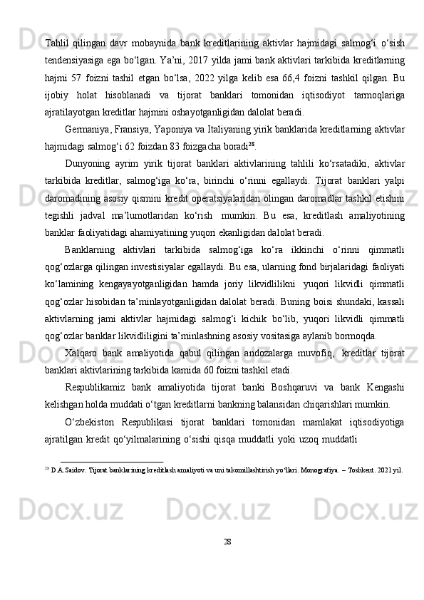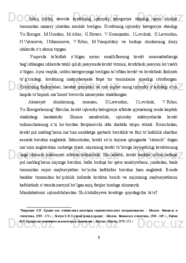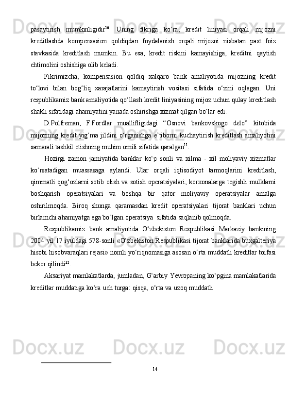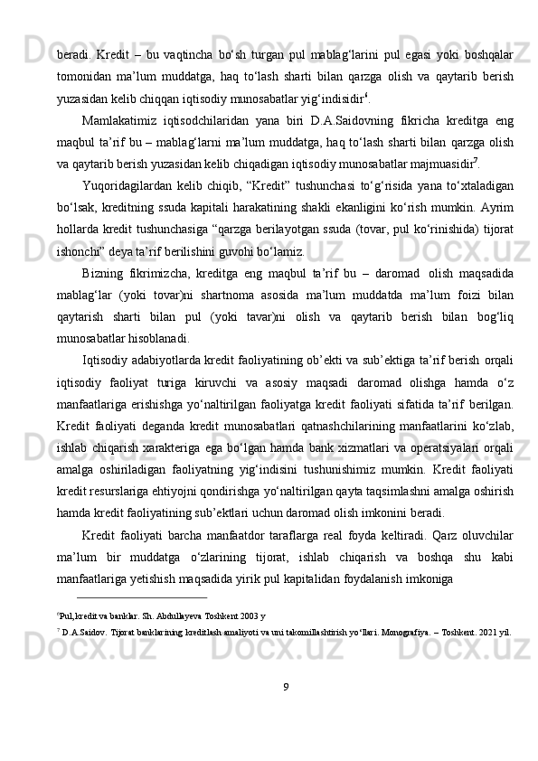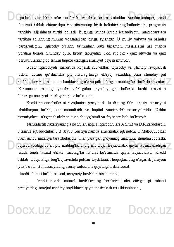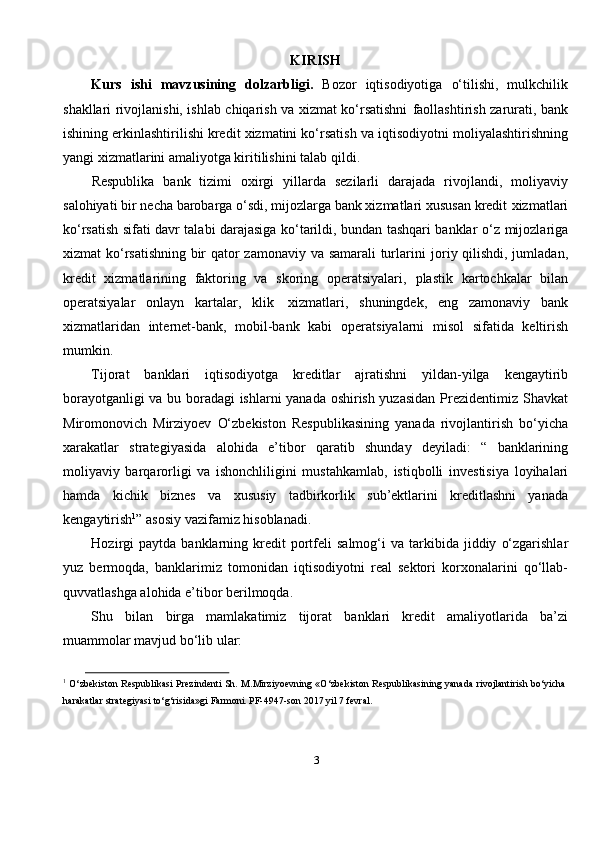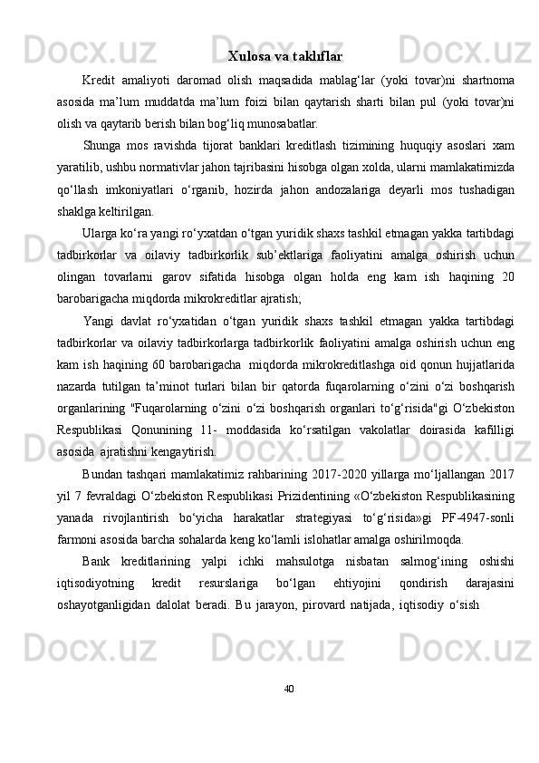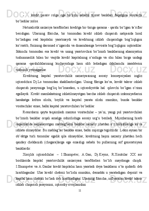 Tijorat banklarning kredit siyosati va uning o’ziga xos xususiyatlari