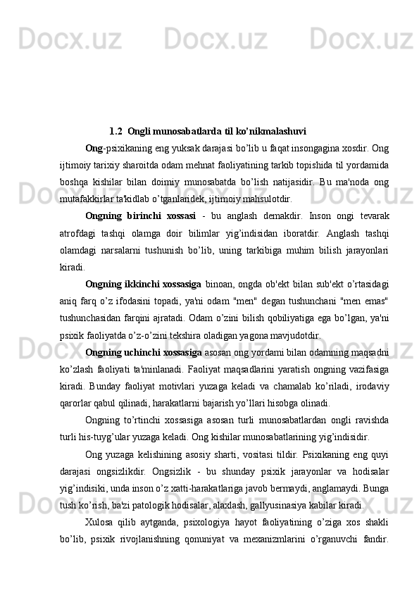 dоirаsigа kо‘rа bir-biridаn fаrqlаnаdi. Хususаn, оng – vоqеlikning kishi miyasidа