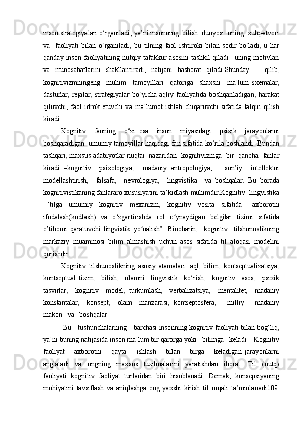 yoki tаsаvvur fаqаt sо‘zlаr vоsitаsidаginа vоqеlаnаdi. Dеmаk, insоn tаfаkkurining