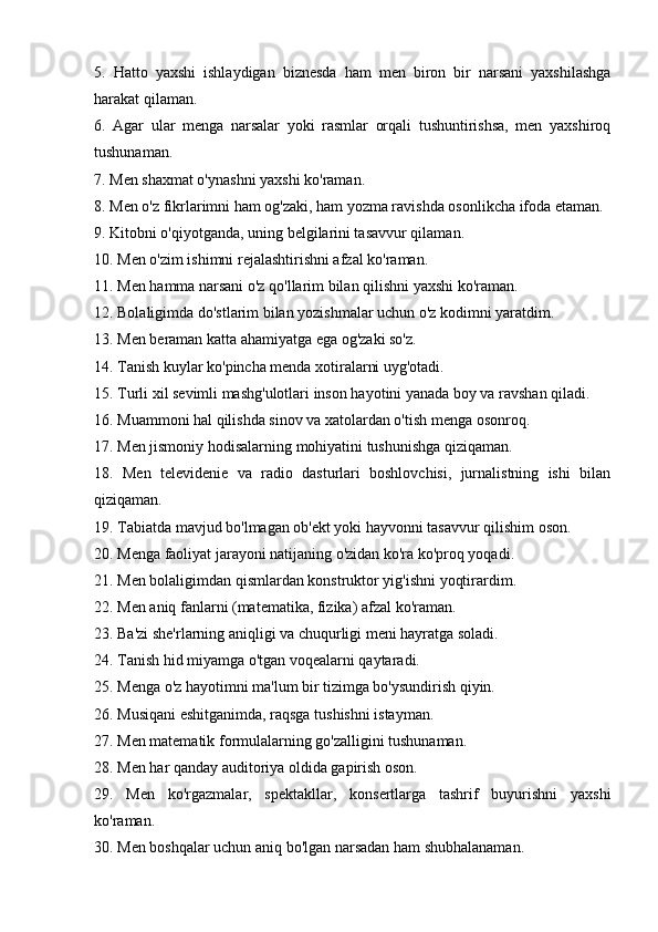 20. Menga faoliyat jarayoni natijaning o'zidan ko'ra ko'proq yoqadi.