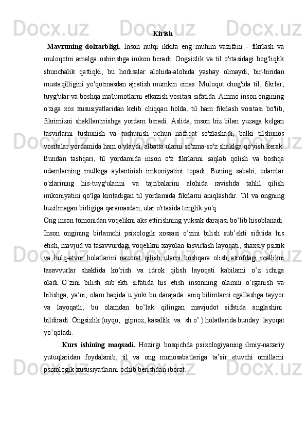 qilаdi. Bir sо‘z bilаn аytgаndа, fikr tildа sо‘zlаr vоsitаsidа shаkllаnаdi. Оngimizdа