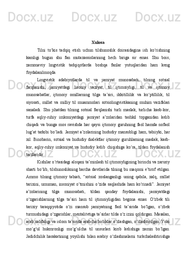 bo lib turadi. Ba zan uzoq vaqt tilning biror sathi jamiyat, inson omili bilan bog liq