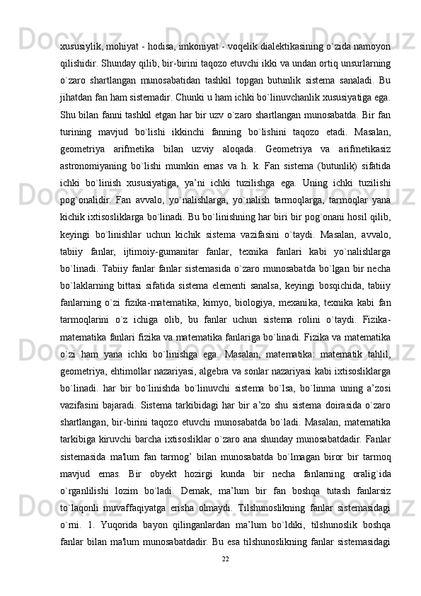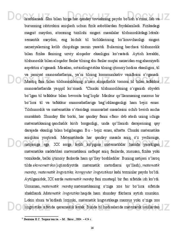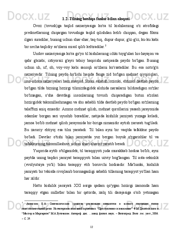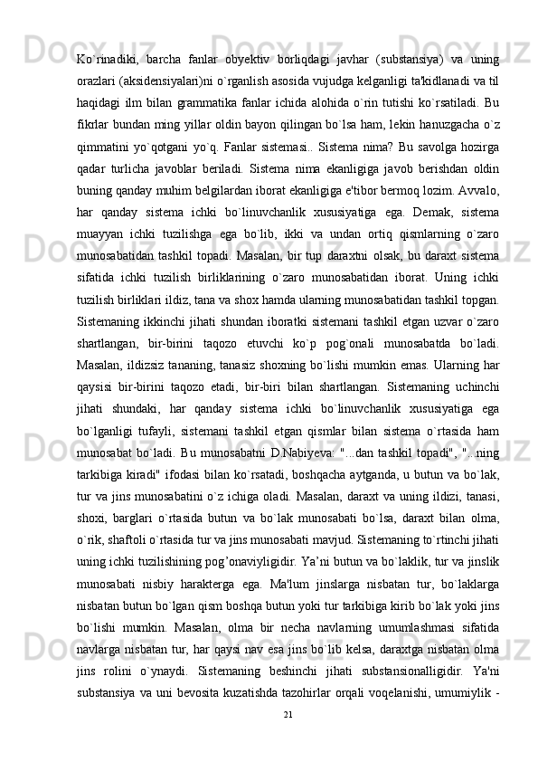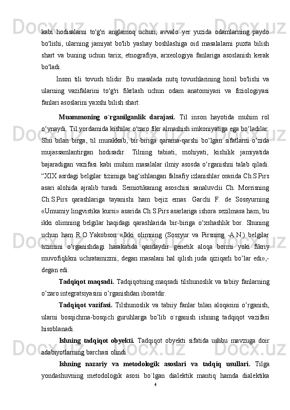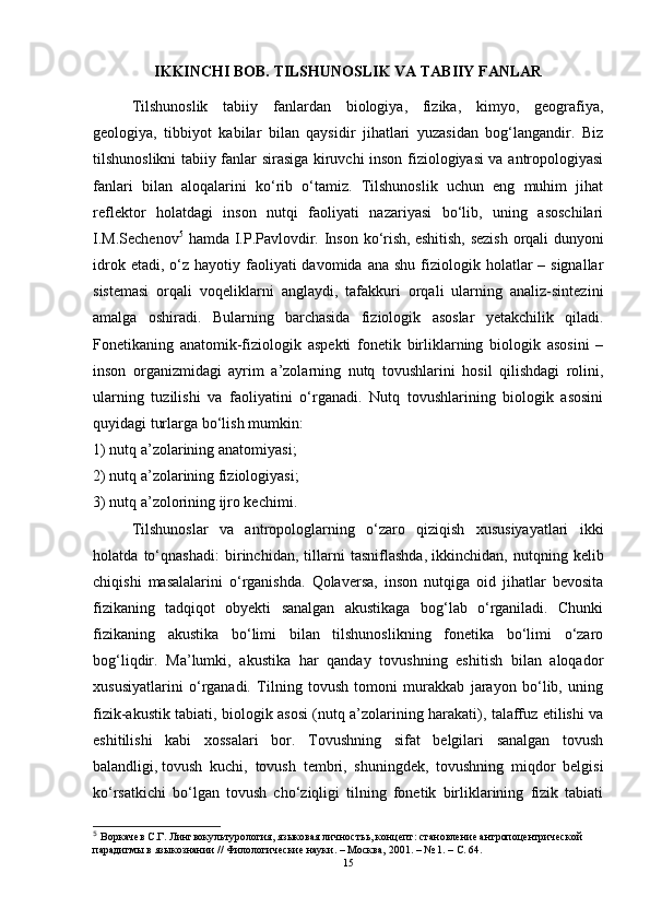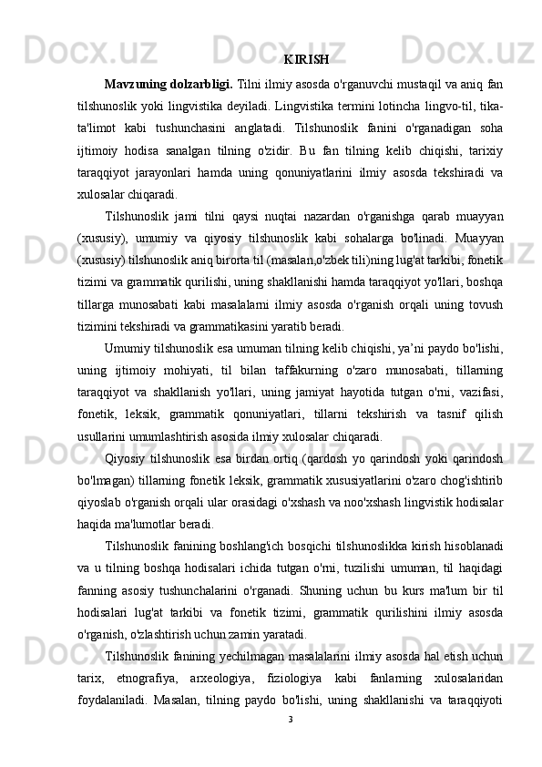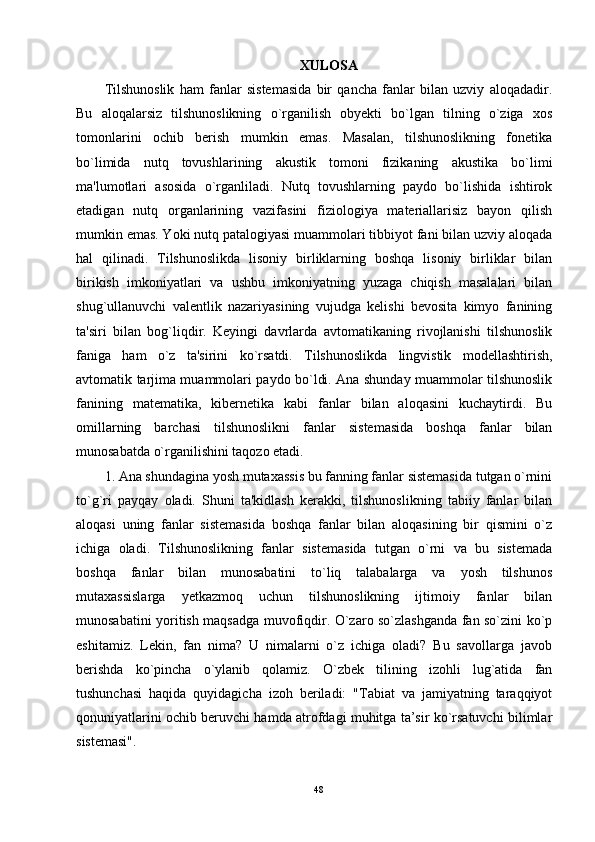 IKKINCHI BOB. TILSHUNOSLIK VA TABIIY FANLAR ALOQASI…………………………………………………………………12