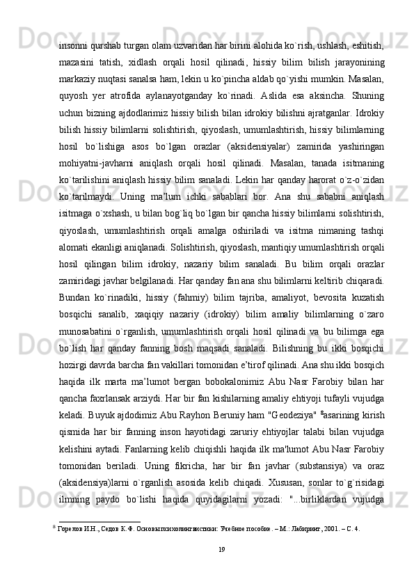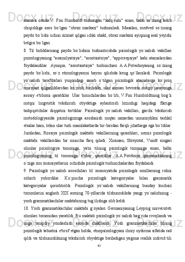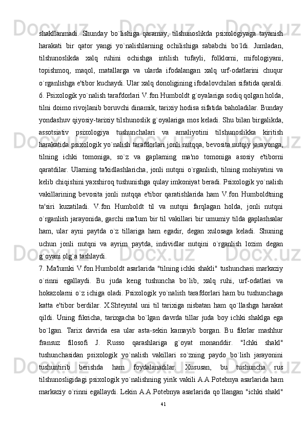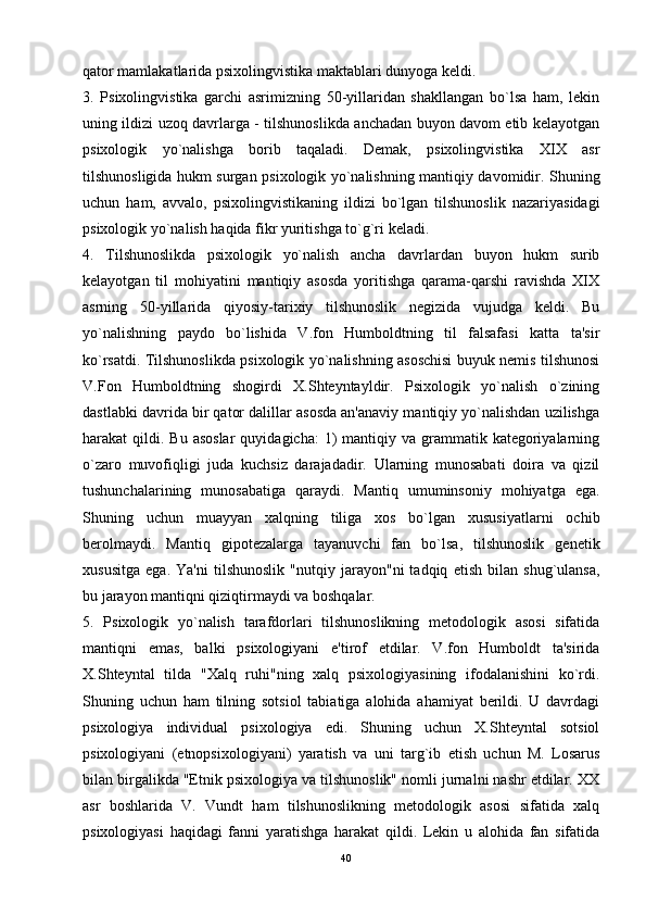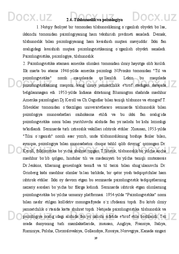 2.4. Tilshunoslik va psixologiya…………………………………………...36