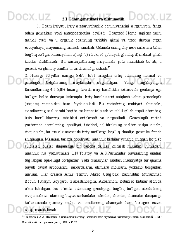 2.1. Odam genetikasi va tilshunoslik………………………………………21