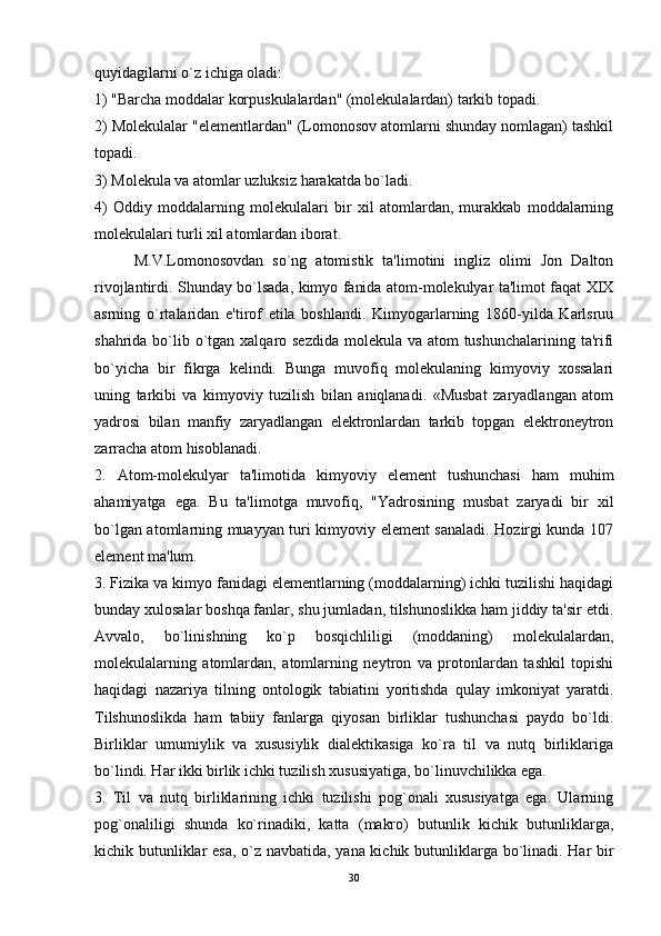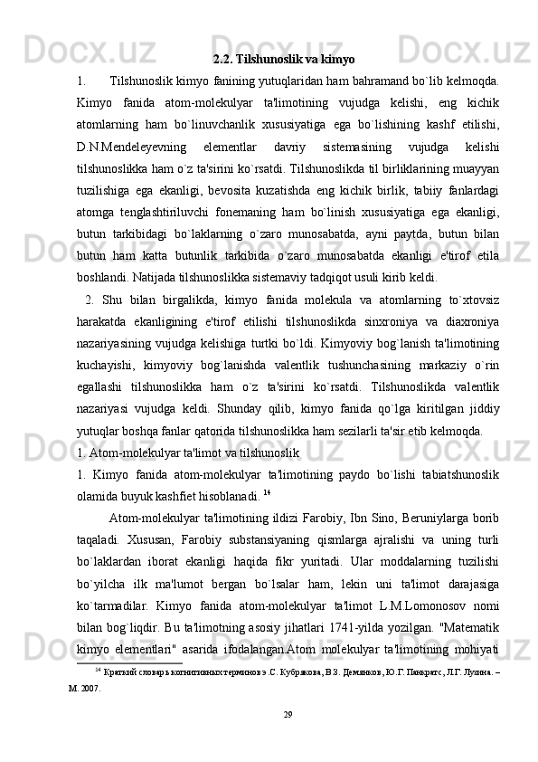 2.2. Tilshunoslik va kimyo………………………….……………………..26