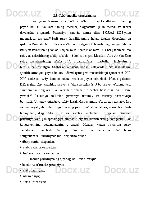 2.3. Tilshunoslik va psixatriya……………………………………………..31